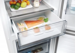 Díky odděleným přihrádkám pro čerstvé potraviny a třem zásuvkám v mrazáku máte vše po ruce a rychle najdete, co potřebujete. Tichý provoz a snadno čistitelné materiály zajišťují bezstarostné používání v každodenním provozu domácnosti.