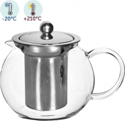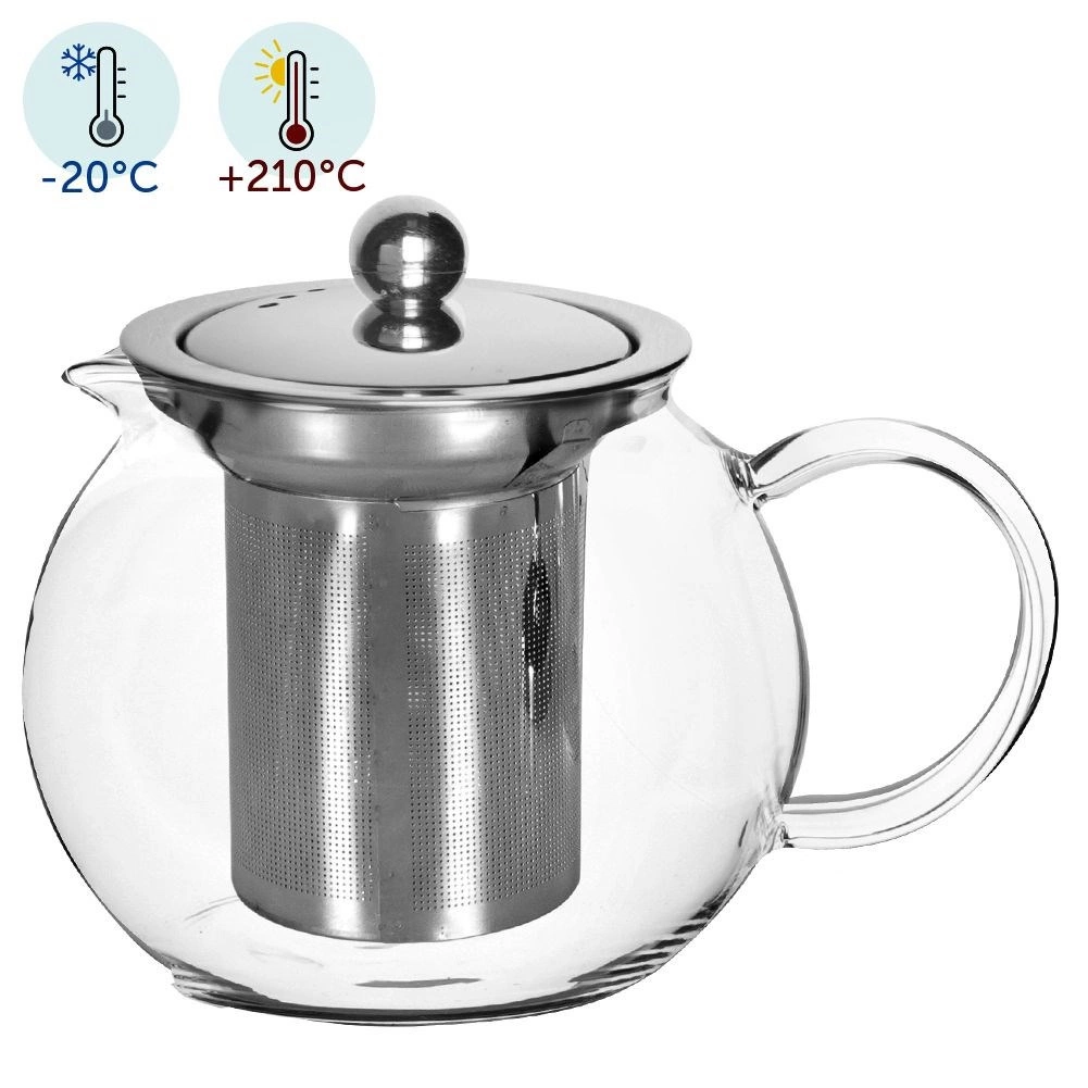 Praktická skleněná konvice s nerezovým infuzérem pro pohodlné louhování sypaných čajů a bylinkových nálevů. Vyrobena z odolného borosilikátového skla, které snáší teploty od -20 °C do +210 °C. Vyjímatelné sítko umožní snadné čištění i použití jako klasického džbánu. Ergonomické ucho, přesný zobáček a možnost mytí v myčce zajišťují pohodlné používání každý den.