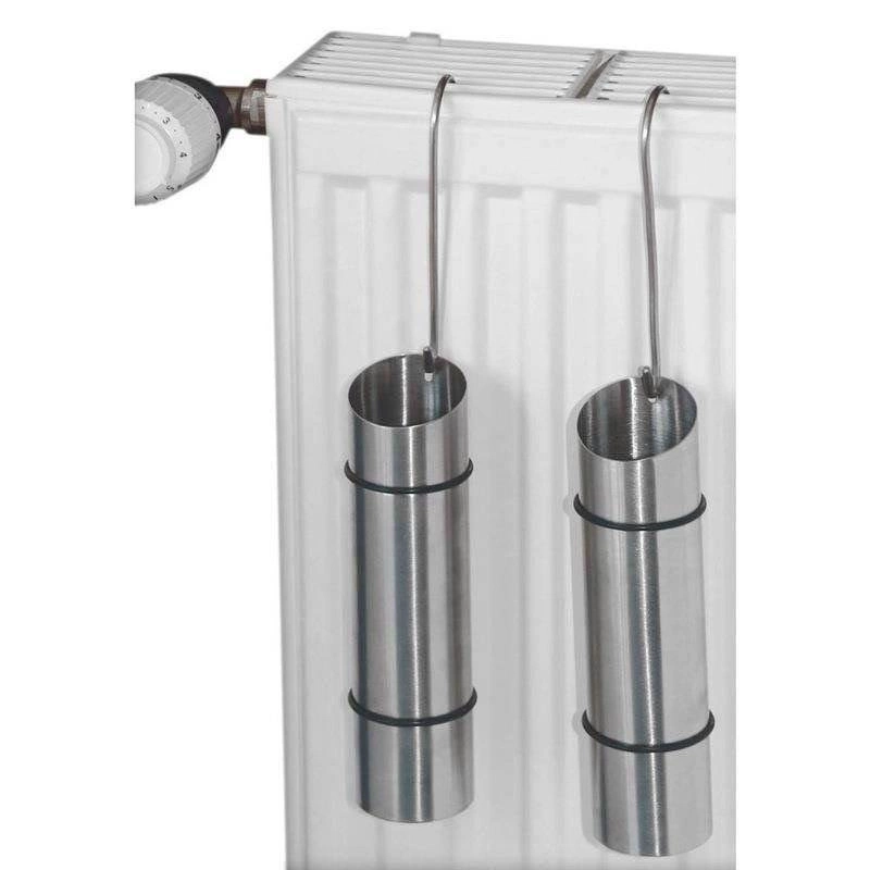 Praktická sada dvou ocelových zvlhčovačů na radiátor s objemem 300 ml zajistí během topné sezóny přirozené zvlhčení vzduchu. Stačí je naplnit vodou, zavěsit na radiátor a užívat si pohodlné a tiché zvlhčování bez elektřiny. Nerezová ocel a jednoduchý design se hodí do každého interiéru.