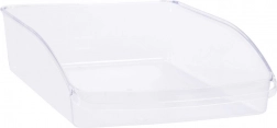 Transparentní stěny a otevřená přední hrana zajišťují skvělou viditelnost a rychlý přístup k obsahu – ideální pro lahve, jogurty i zeleninu.