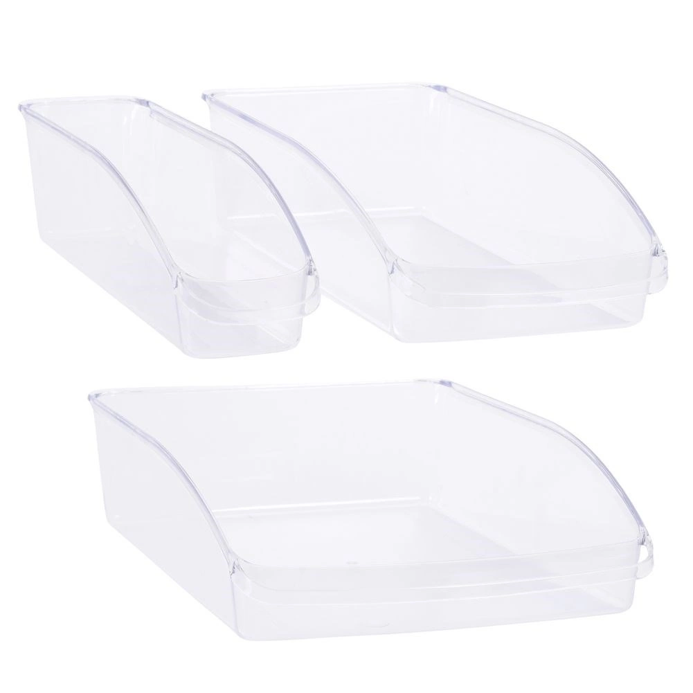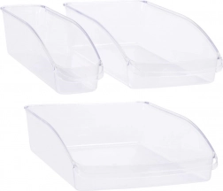 Udržujte svou lednici přehlednou a hygienickou se sadou tří průhledných organizérů. Díky otevřenému čelu a vysokým bokům je obsah vždy snadno přístupný, což pomáhá šetřit místo a čas. Organizéry jsou z odolného plastu, vhodné do myčky a ideální pro třídění nápojů, ovoce, zeleniny i konzerv. Maximální přehled, snadný přístup a čistota bez námahy v každé polici.