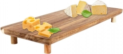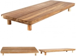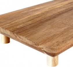 Stylová dřevěná servírovací a krájecí deska na čtyřech nožkách z akáciového dřeva v rozměru 36 × 14,5 × 4 cm. Nabízí stabilní zvýšenou konstrukci pro pohodlné servírování i krájení, odolné akáciové dřevo s krásnou přírodní kresbou a univerzální využití od sýrů a uzenin po ovoce, snacky i sushi.