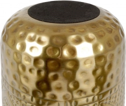 Kvalitní kov s mosazným povrchem zajišťuje dlouhou životnost a snadnou údržbu. Stabilní dno s protiskluzovou pěnou brání převržení a zároveň chrání parapety, stolky i komody před poškozením. Obal lze použít i jako dekorativní nádobu nebo vázou pro řezané květiny.