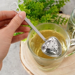 Užijte si dokonale čistý šálek sypaného čaje díky praktickému sítku ve tvaru srdce. Díky jemné perforaci se do nápoje nedostanou žádné zbytky lístků, zatímco čaj si zachová plnou chuť a vůni. Dlouhá rukojeť umožňuje pohodlné umístění i vyjmutí z hrnku bez rizika opaření.