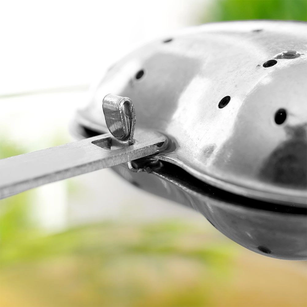 Sítko je vyrobeno z nerezové oceli v elegantním stříbrném provedení, je odolné, hygienické a snadno se čistí. Praktické zavírání s pantem bezpečně drží sypaný čaj či bylinky uvnitř. Hodí se i pro louhování bylin nebo pro vložení koření při vaření polévek a vývarů.