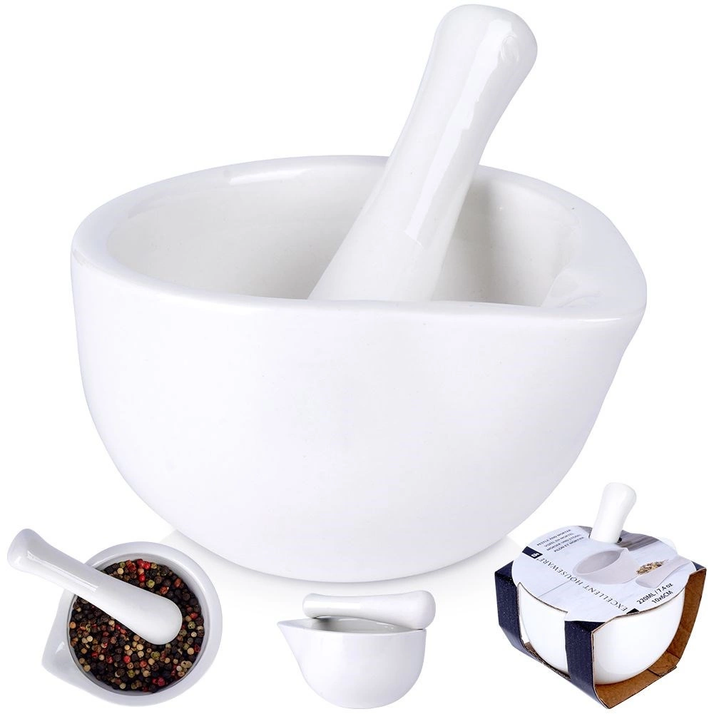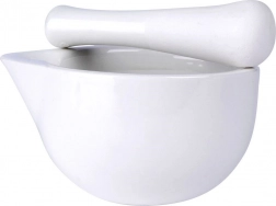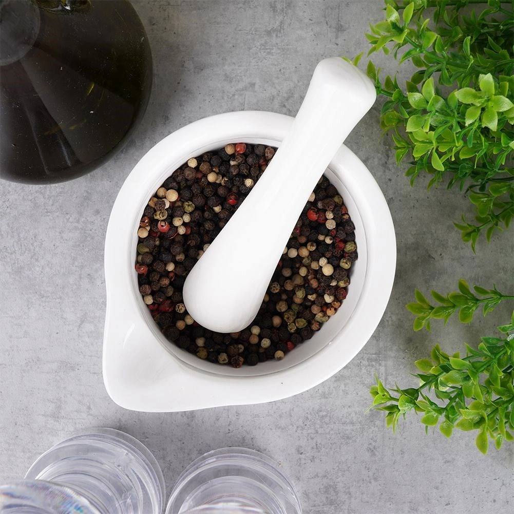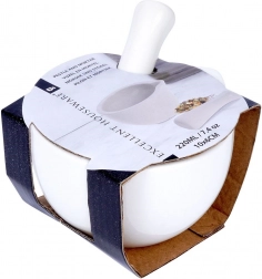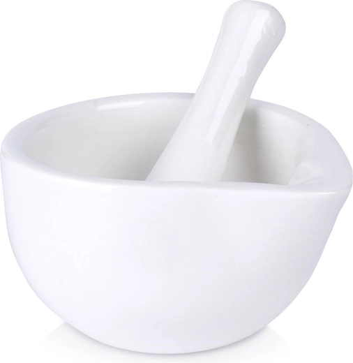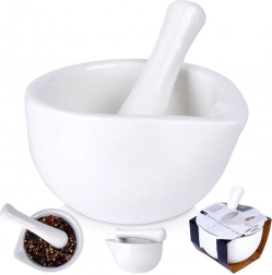 Díky odolnému porcelánu v elegantní bílé barvě se hmoždíř stane spolehlivým pomocníkem i stylovým doplňkem kuchyně. Materiál je hygienický, nepohlcuje pachy a snadno se čistí – klidně i v myčce.