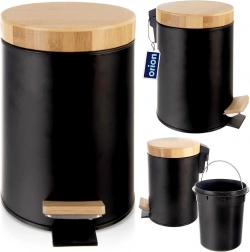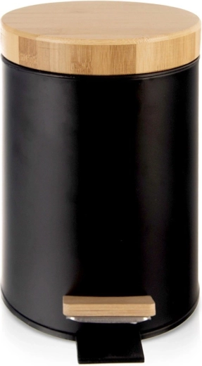 Kompaktní odpadkový koš o objemu 3 l v elegantní černé barvě s bambusovým víkem a pedálem je ideální do koupelny, kanceláře či ložnice. Díky pedálovému otevírání bez použití rukou je používání maximálně hygienické, vyjímatelná vnitřní nádoba usnadňuje vysypávání a čištění a matný kov s bambusovými akcenty skvěle zapadne do moderního interiéru.