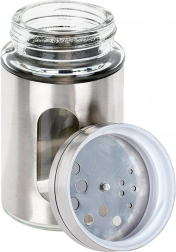 Univerzální kořenka z odolného skla se nerezovým pláštěm a víčkem je ideální pro koření, cukr, posypky i bylinky. Otočné víčko nabízí třístupňovou regulaci – jemné sypání, střední dávkování i rychlé nasypání většího množství. Díky průhlednému okénku máte vždy přehled o obsahu a jeho množství.