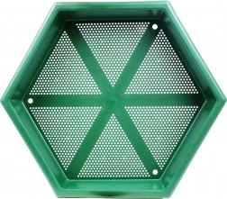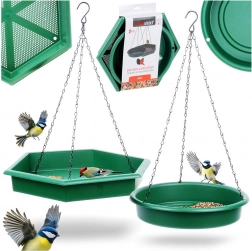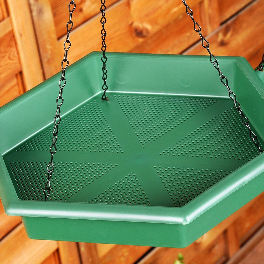 Šestihranný podnos s perforovaným dnem odvádí dešťovou vodu a omezuje plesnivění semen. Ideální pro celoroční dokrmování.