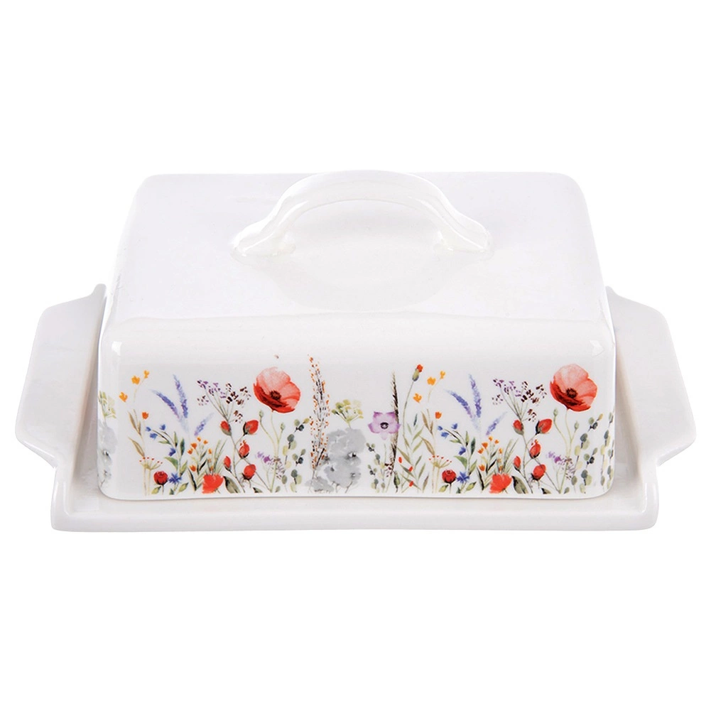 Porcelánová máslenka s jemným dekorem máků a lučních květů je navržena pro uchovávání i servírování másla. Poklop s praktickým úchytem chrání máslo před pachy z lednice a pomáhá udržet jeho čerstvost a plnou chuť. Nadčasový tvar skvěle zapadne do každé kuchyně a ladí s různými typy stolních souprav.