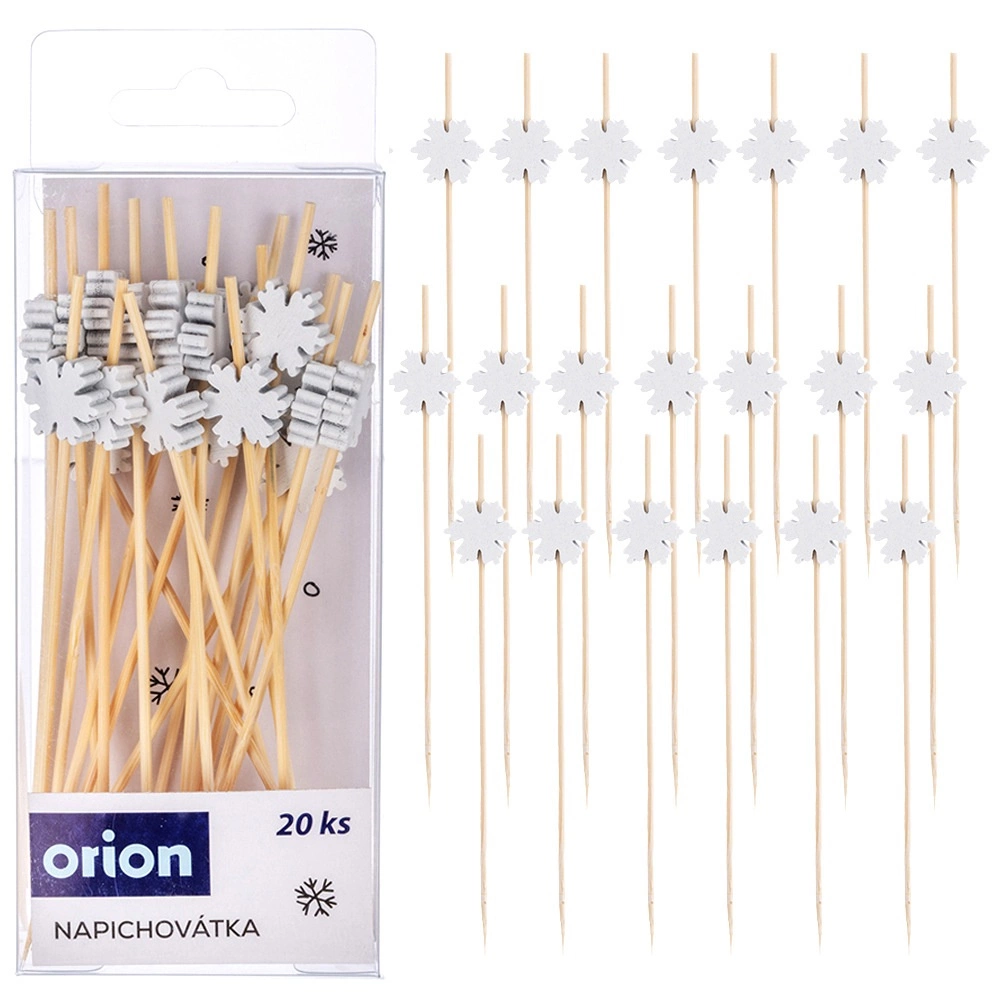 Stylová bambusová napichovátka se sněhovou vločkou promění každé občerstvení v sváteční zážitek. V balení najdete 20 ks o délce 12 cm, ideální pro kanapky, sýry, ovoce i mini dezerty. Vyrobeno z přírodního bambusu a lakovaného dřeva vhodného pro kontakt s potravinami.