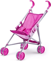 Kočárek má kovovou konstrukci a je skládací, což usnadňuje jeho přepravu a skladování.
