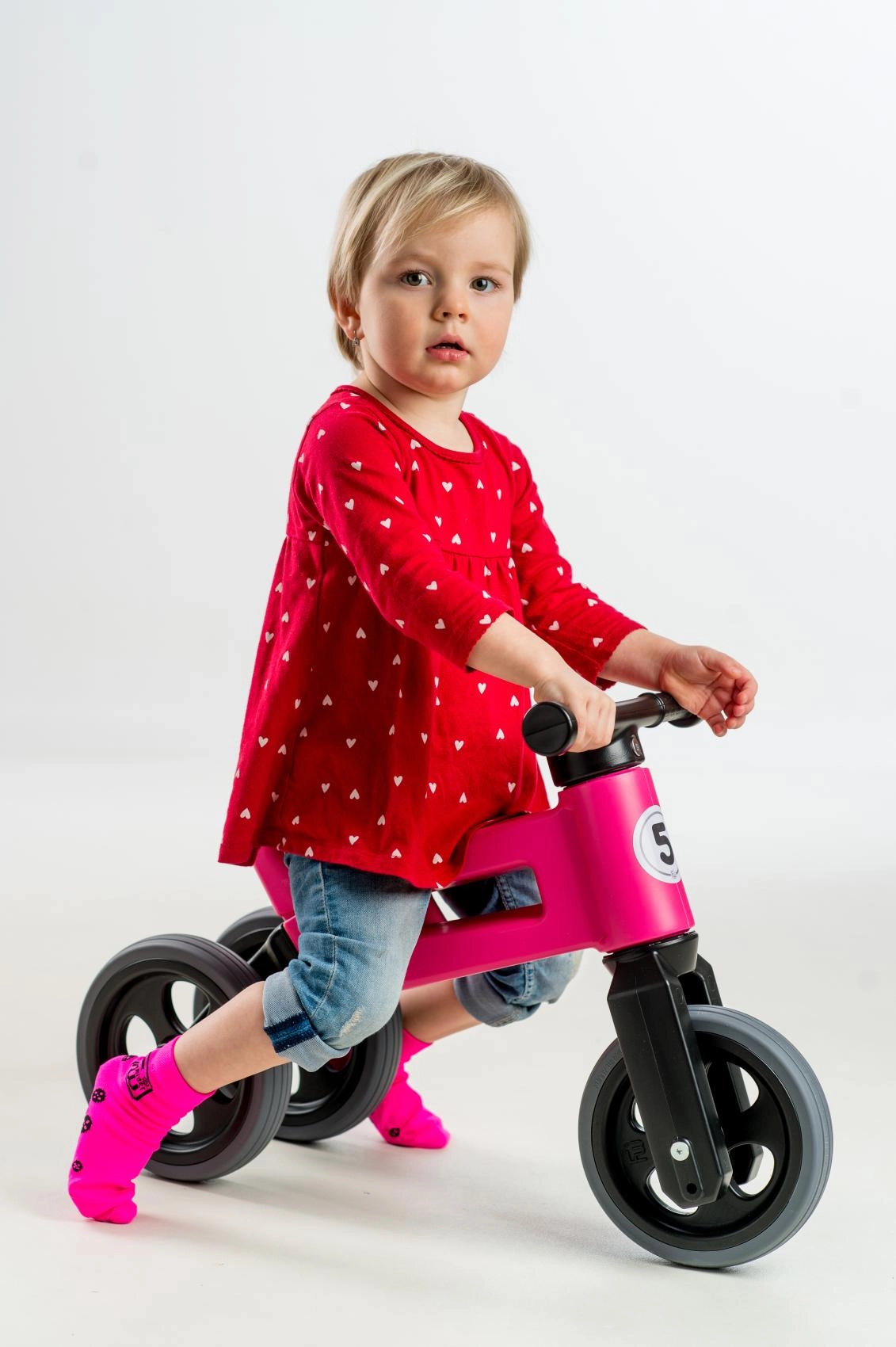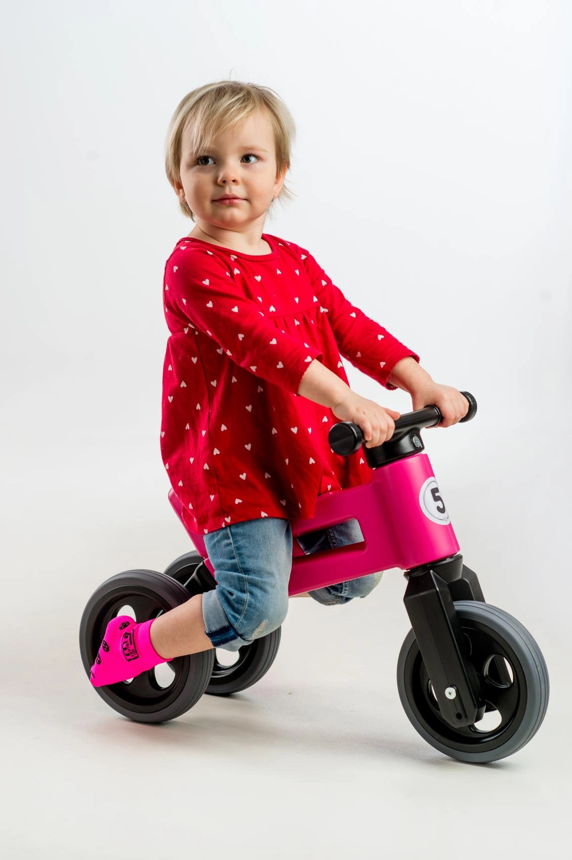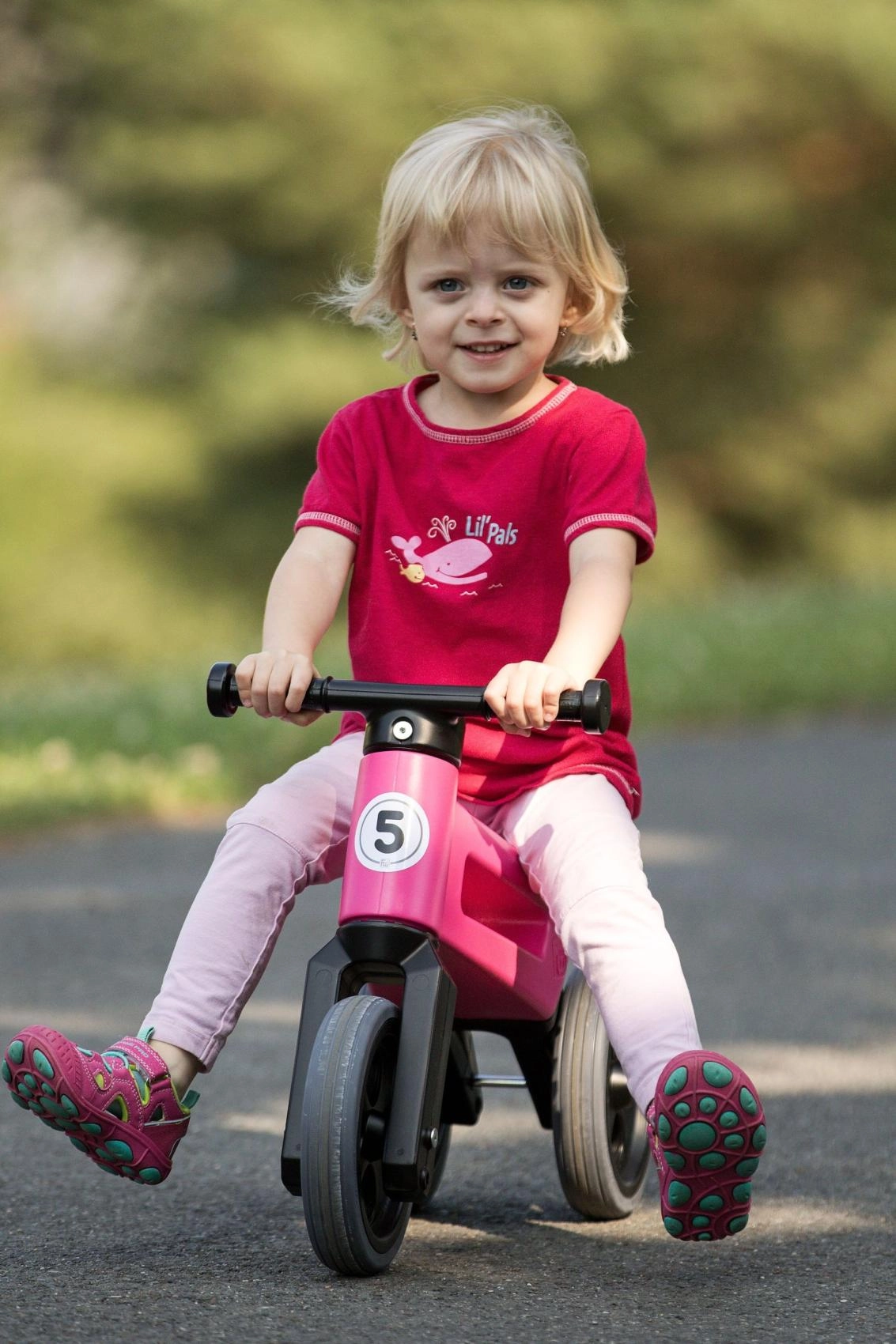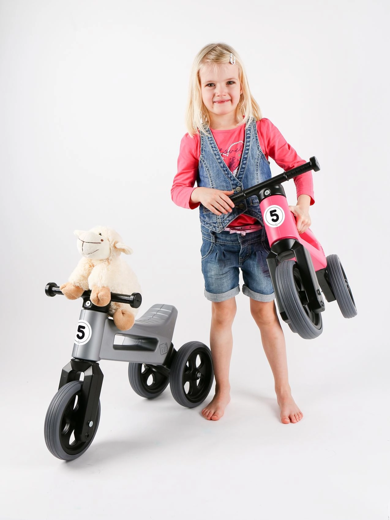 Začněte stabilní tříkolkou a jakmile je čas trénovat rovnováhu, jednoduše vyměňte dvě zadní kola za jedno. Ideální pro plynulý přechod k prvnímu kolu.