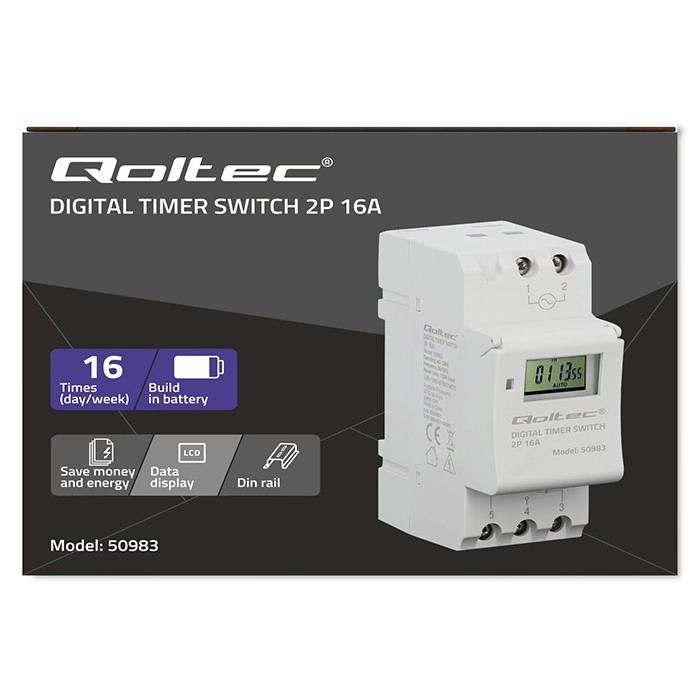 Chytrý časový spínač na DIN lištu vám pomůže automatizovat zapínání a vypínání zařízení, snížit spotřebu a zvýšit bezpečnost instalace. Nabízí maximální zátěž 16 A / 3600 W, až 16 denních nebo týdenních programů, podsvícený LCD displej a vestavěnou baterii pro uchování nastavení až 180 dní bez napájení.
