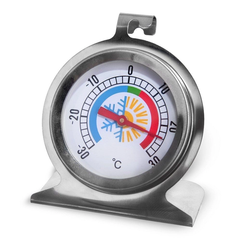 Konstrukce z kvalitní nerezové oceli a skla odolného nízkým teplotám zaručuje dlouhou životnost. Praktická stabilní základna umožní postavení na polici, zatímco závěsné očko je ideální k upevnění na mřížku. Teploměr se snadno udržuje, nepohlcuje pachy a je zcela bezpečný a neutrální vůči potravinám.