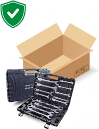 Klíče jsou vyrobeny z chrom‑vanadiové oceli (CrV) pro vysokou odolnost proti opotřebení, korozi i deformacím. Ergonomický tvar zajišťuje jistý úchop a efektivní přenos síly, zatímco odolný přepravní kufr udržuje nářadí přehledně uspořádané a chráněné při transportu.