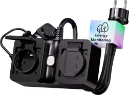 Lišta je navržena pro venkovní použití – odolné provedení IP44, nehořlavé materiály (třída V0) a integrované ochrany proti přetížení a přehřátí zvyšují bezpečnost. Praktická je i funkce sledování spotřeby pro každou zásuvku zvlášť, včetně podpory monitoringu výroby z balkonových fotovoltaik (levá zásuvka).
