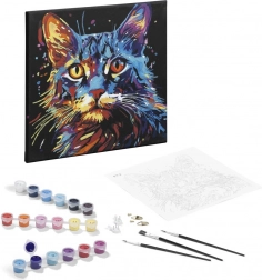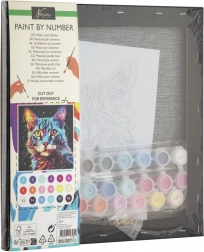 Tato sada pro malování podle čísel je ideální volbou pro děti i dospělé, kteří milují zvířata a chtějí si odpočinout u kreativní činnosti. Černé plátno dodává motivu kočky výrazný kontrast a moderní vzhled, díky kterému hotový obraz vynikne v každém interiéru.