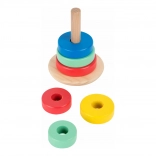 Barevné kroužky v různých velikostech motivují k třídění, počítání a rozpoznávání barev, což rozvíjí logické myšlení.
