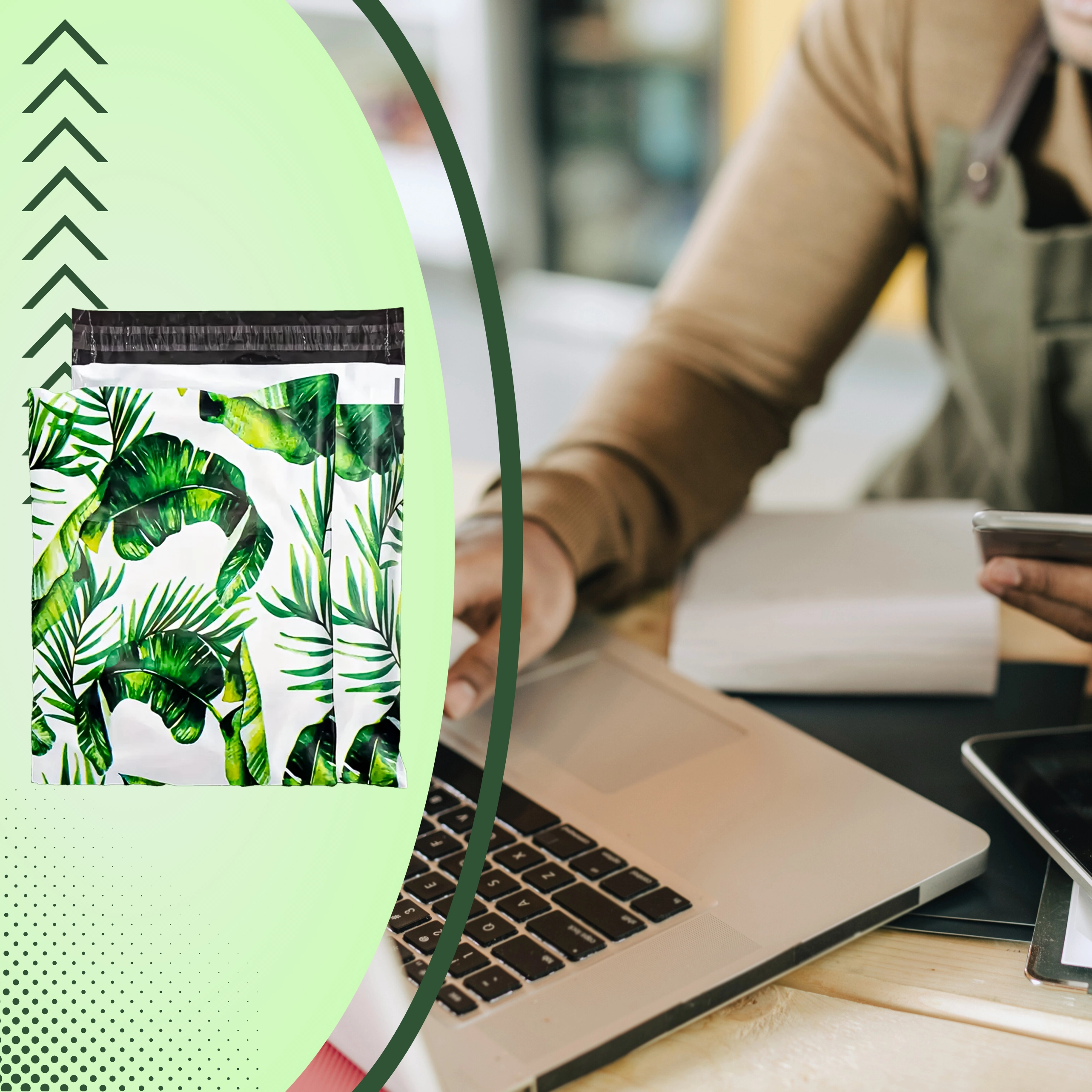 Hledáte spolehlivé a atraktivní balení pro e‑shop nebo domácí zásilky? Tyto plastové poly mailery s motivem zelených listů kombinují odolnost, nízkou hmotnost a profesionální vzhled. Rozměr 255 × 370 mm je ideální pro textil, doplňky, tiskoviny a další lehčí produkty.