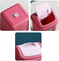 Praktický a kompaktní koš na odpadky s výklopným víkem pro snadné a hygienické odhazování. Díky úzkému tvaru se vejde i do menších prostor, perfektní do kuchyně, koupelny i kanceláře. Odolný plast se snadno čistí a koš je stabilní a pohodlný na používání.