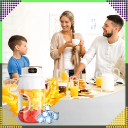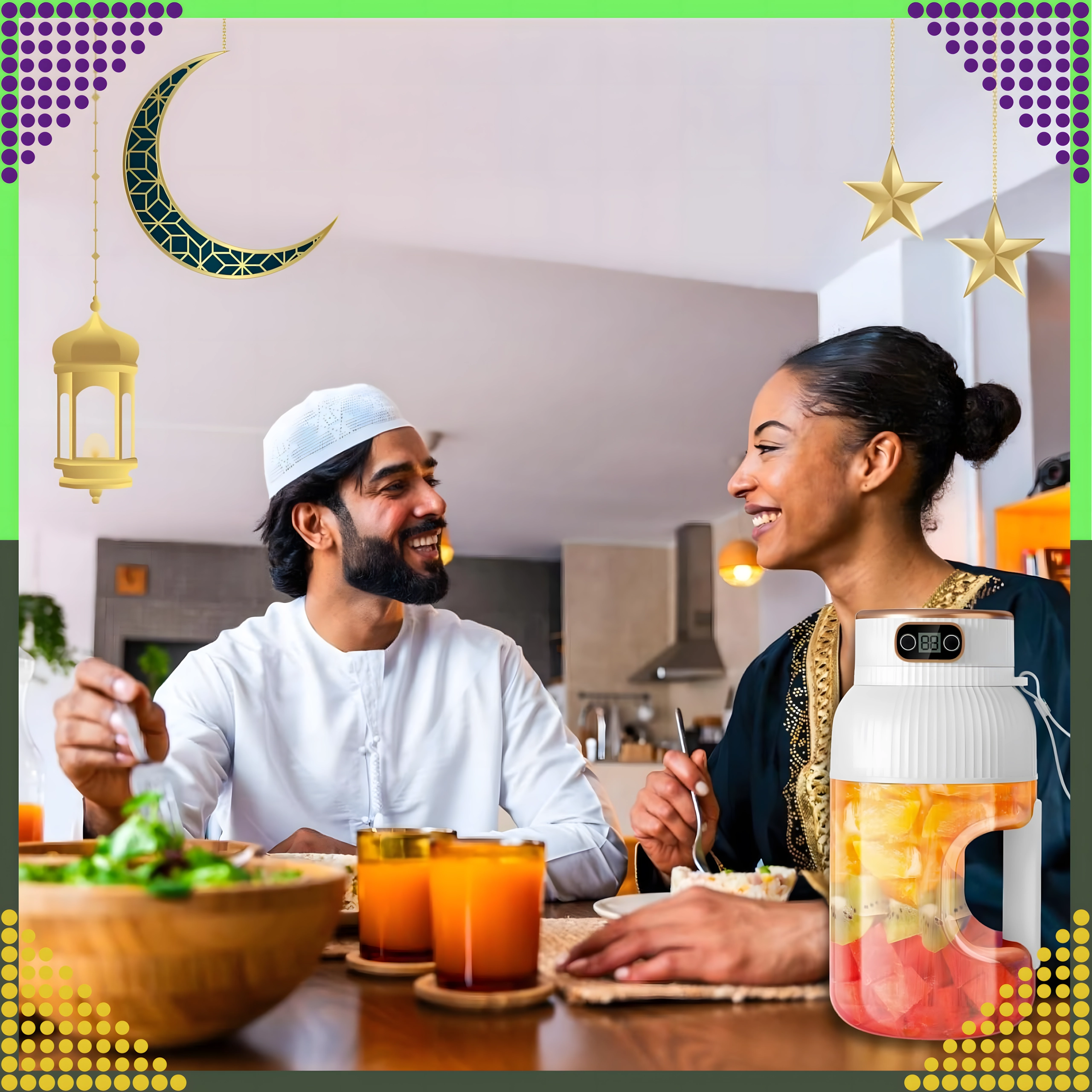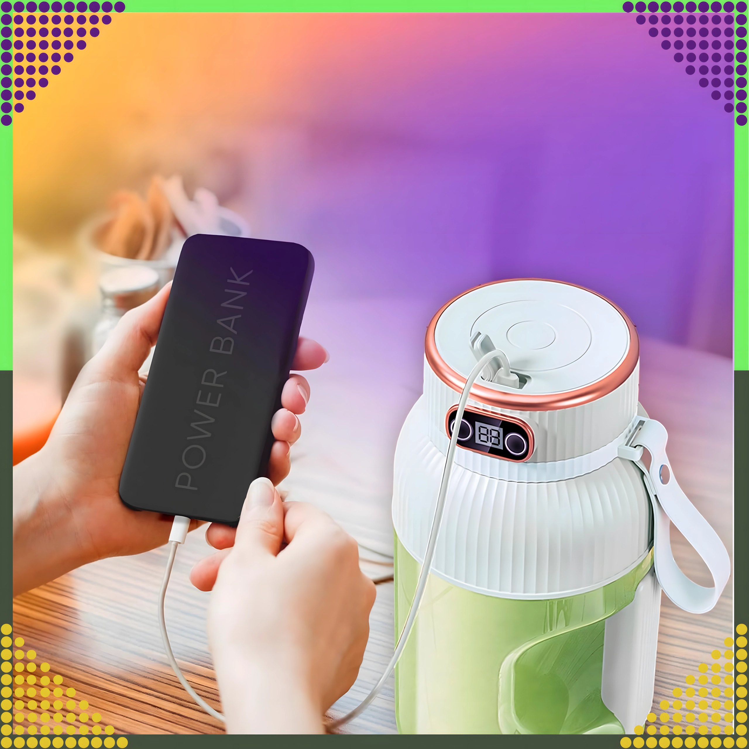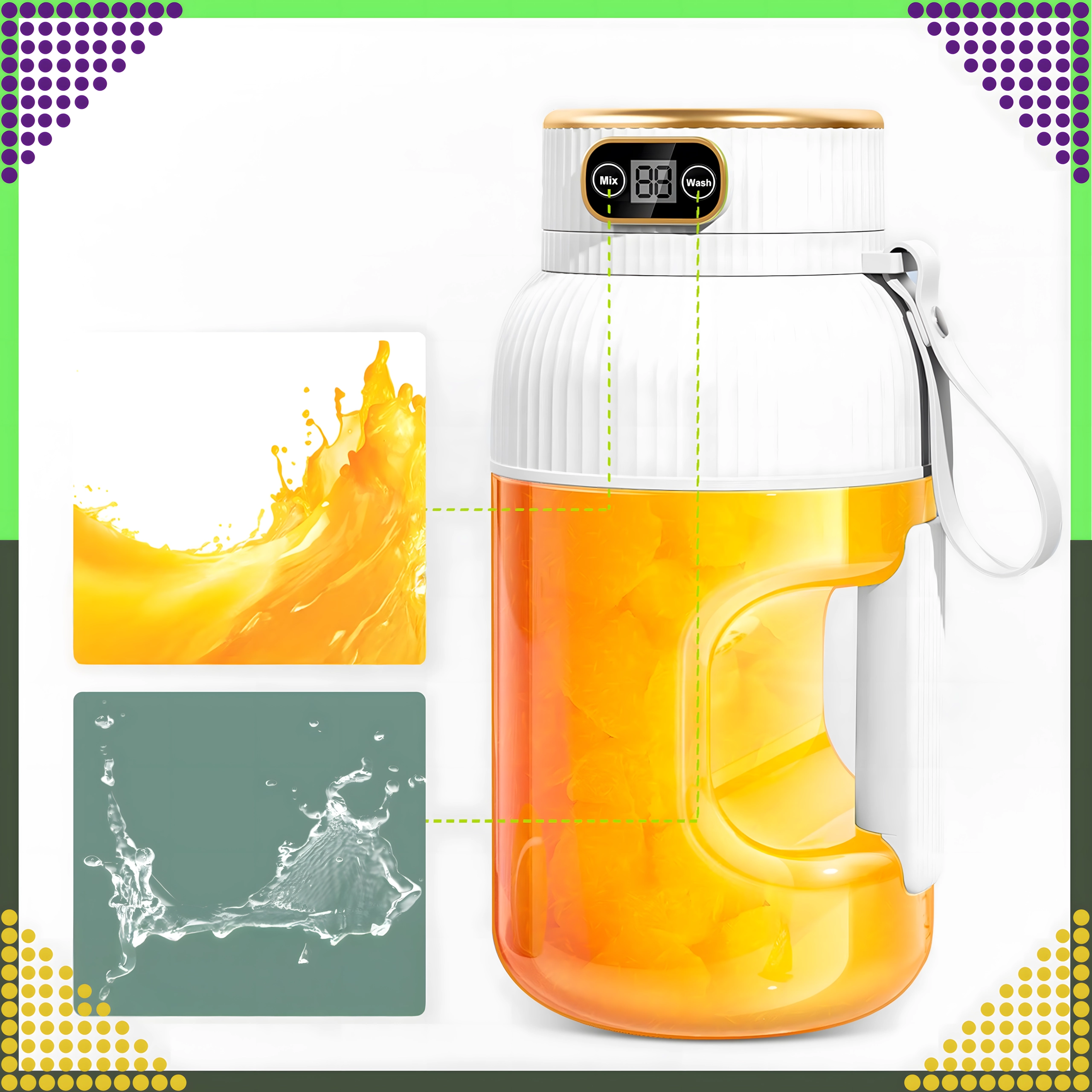 Praktický přenosný mixér s velkou kapacitou 1 l, 10 nerezovými čepelemi pro jemné smoothie a šťávy, digitálním displejem a USB nabíjením. Ideální do práce, domů i na cesty – mixujte a pijte přímo z jedné nádoby.