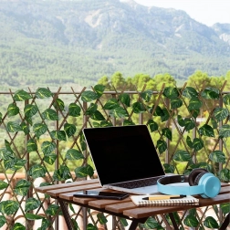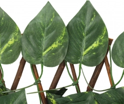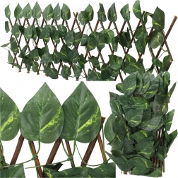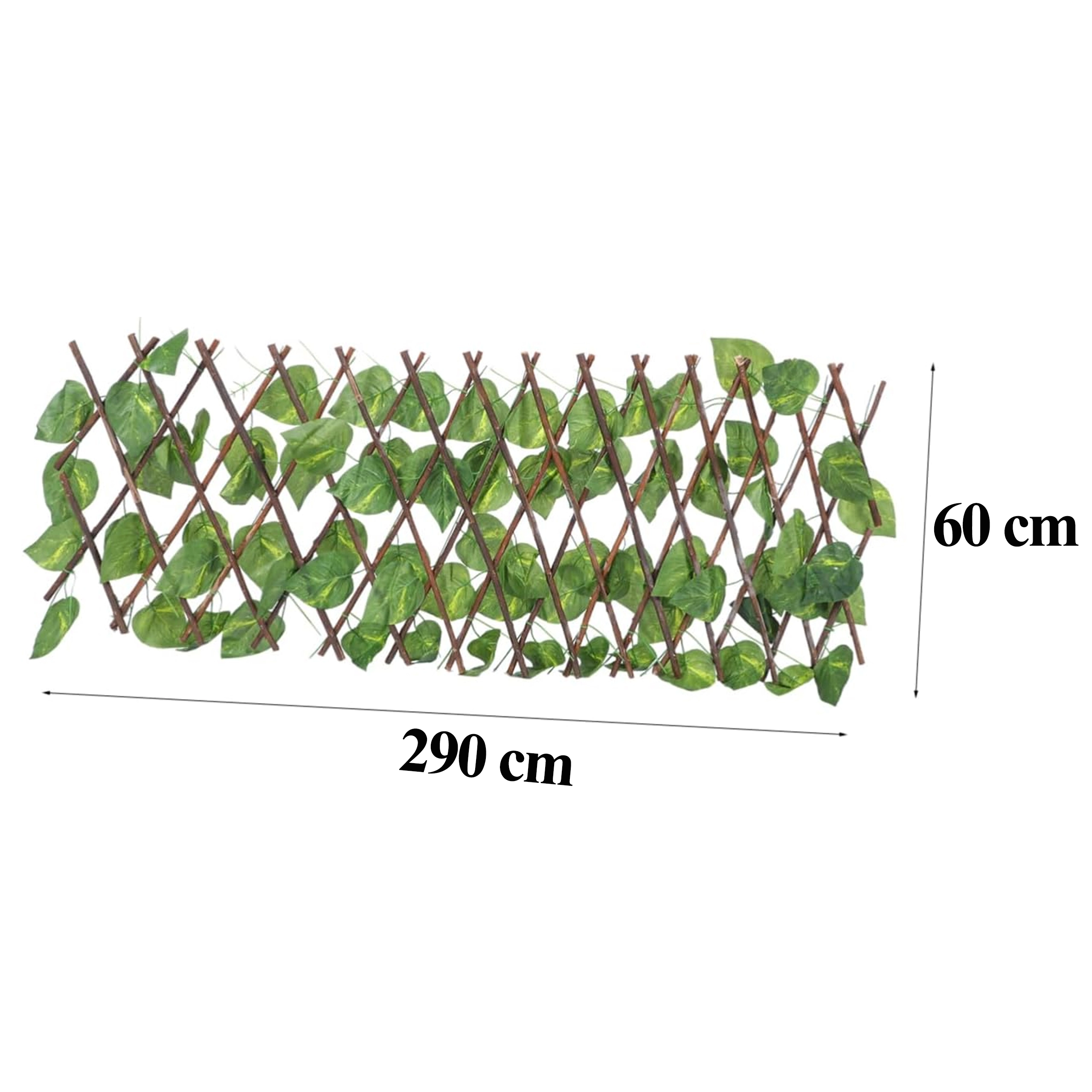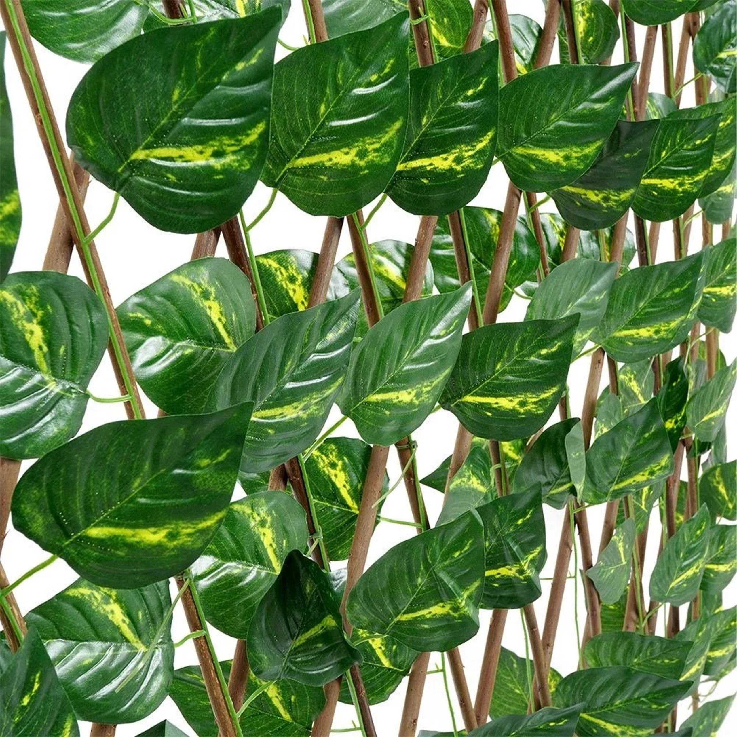 Tato dekorativní mříž s hustými umělými listy na dřevěném křížovém roštu slouží jako elegantní zástěna pro balkony, terasy, pergoly i ploty. Realisticky vypadající, stálezelené listy poskytují příjemné krytí a zároveň propouštějí vzduch – ideální pro soukromí bez údržby.