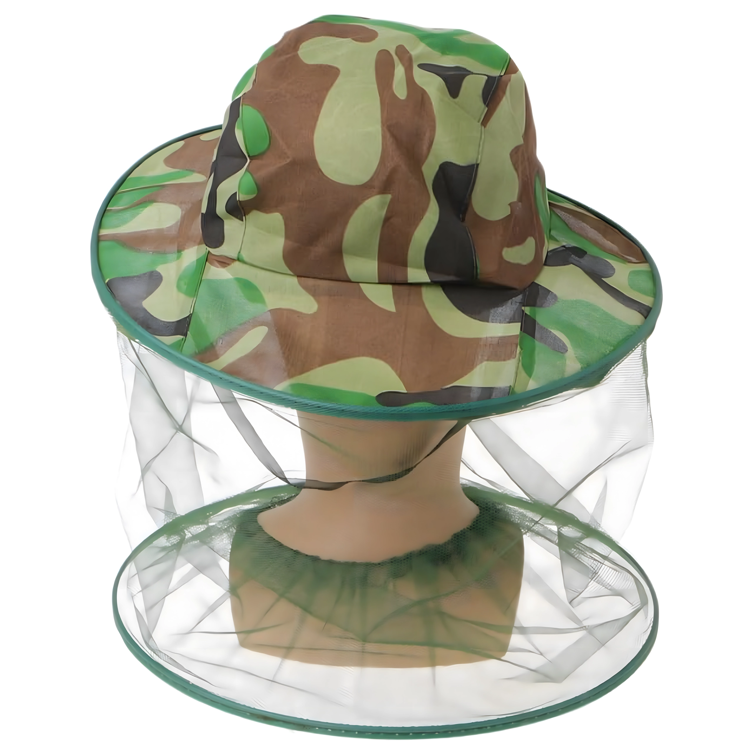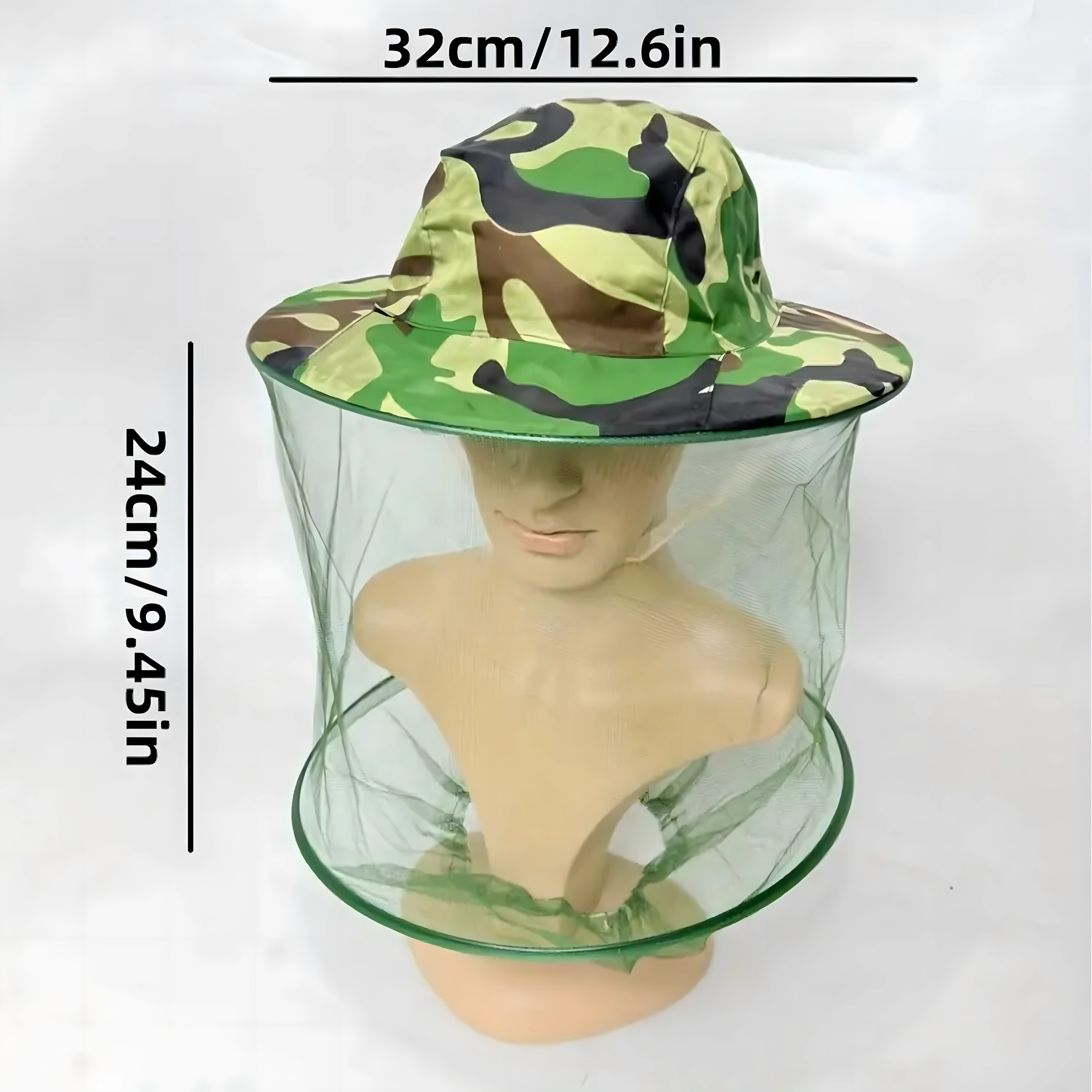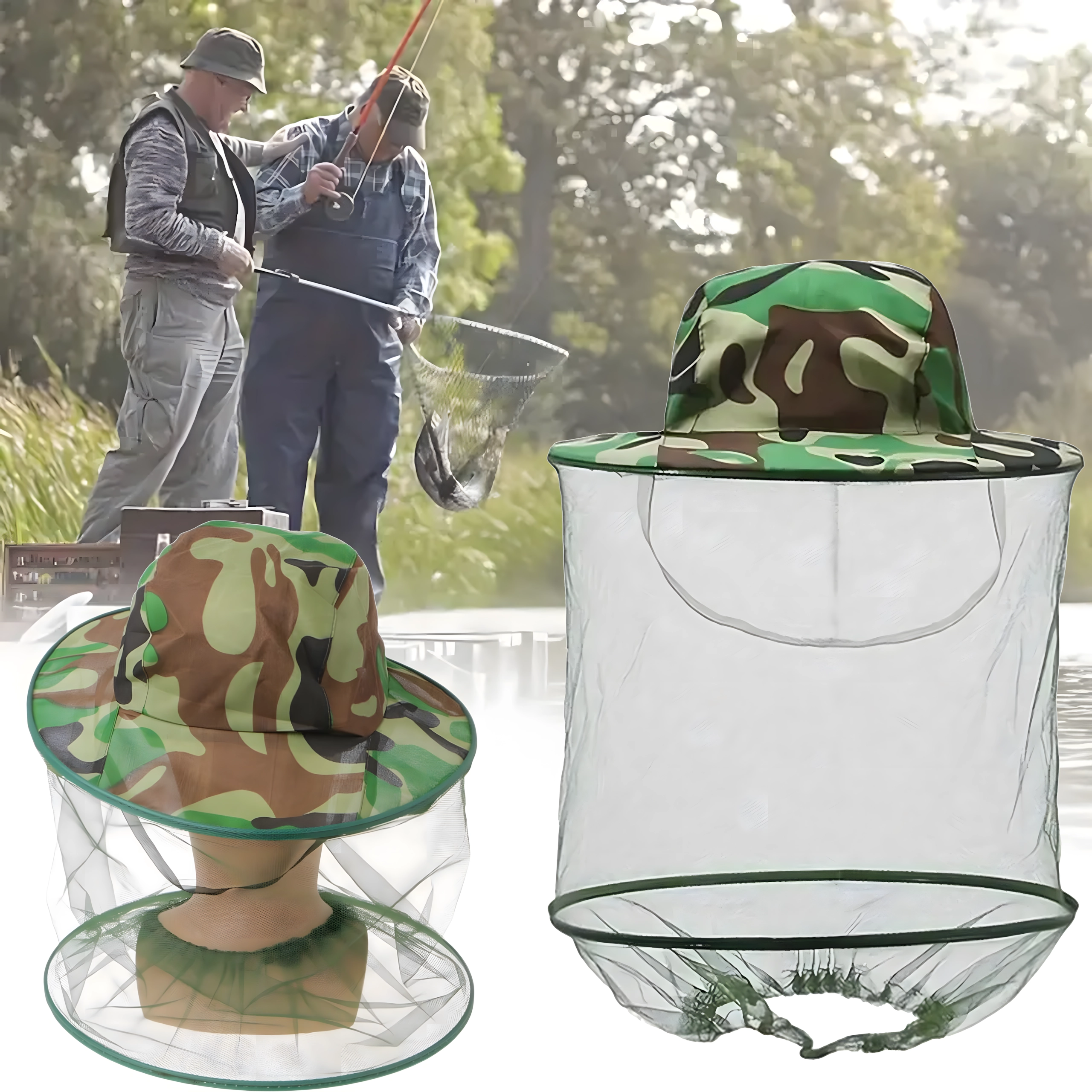 Široká krempa drží síť dál od obličeje a kamuflážní vzor se hodí pro rybáře, myslivce i outdoorové nadšence.