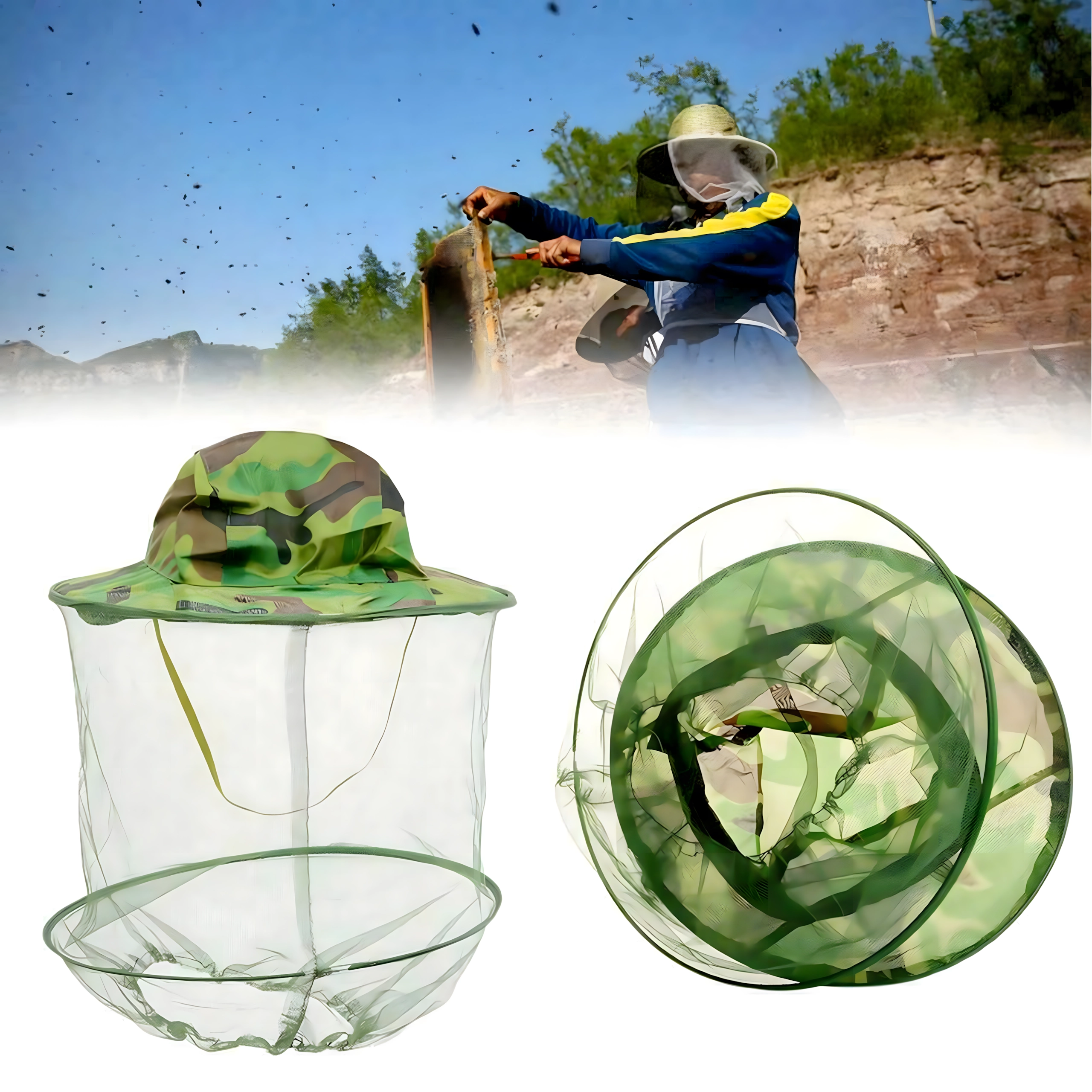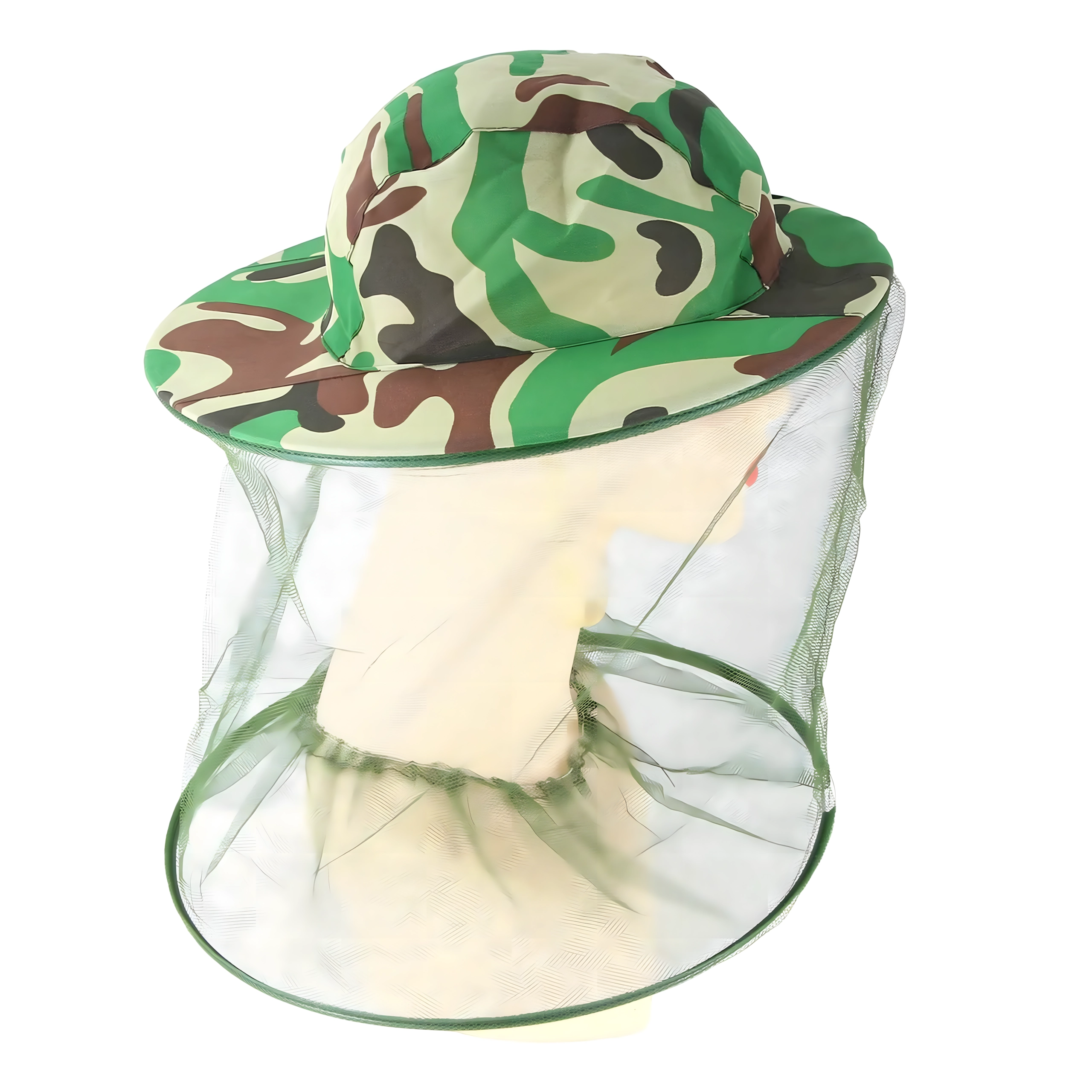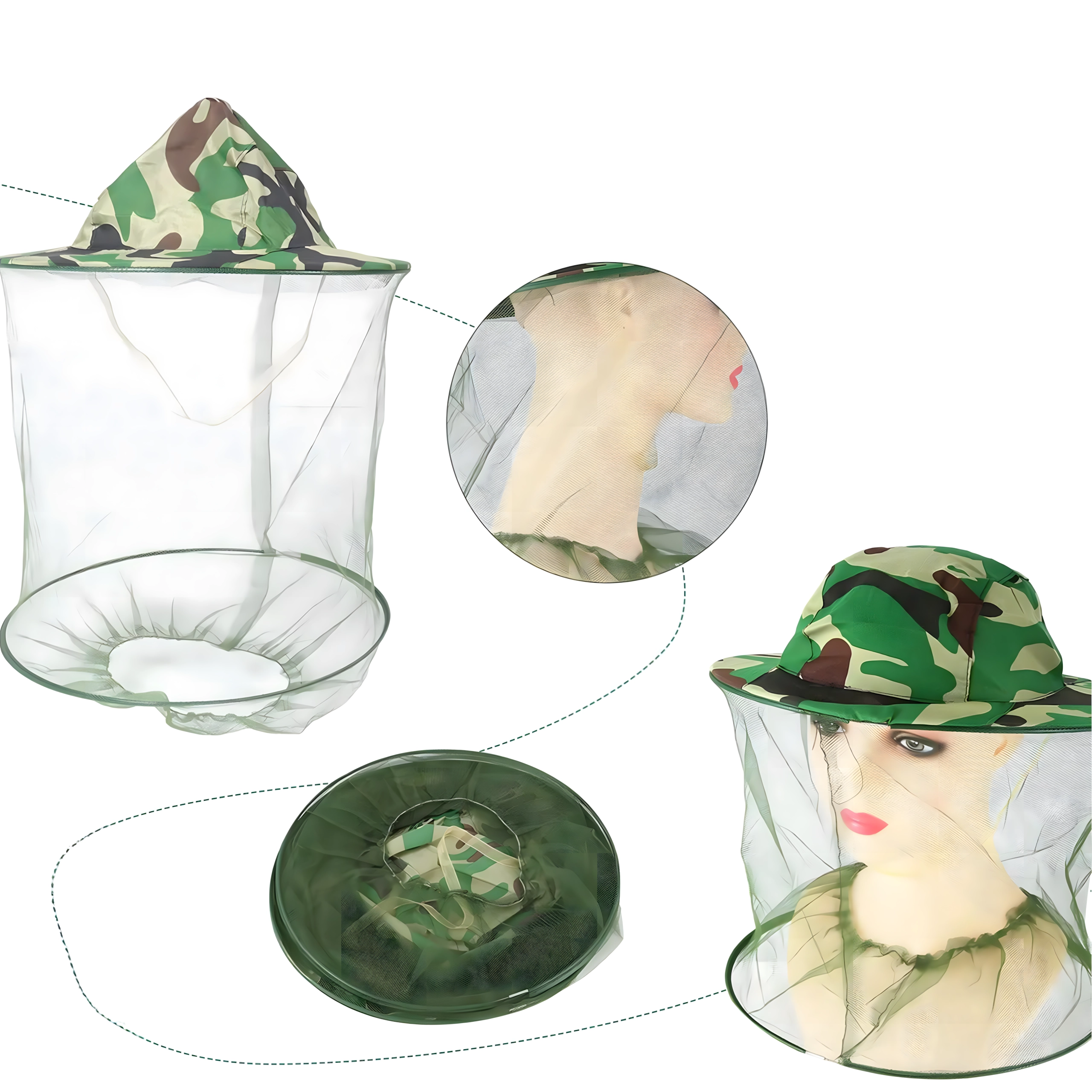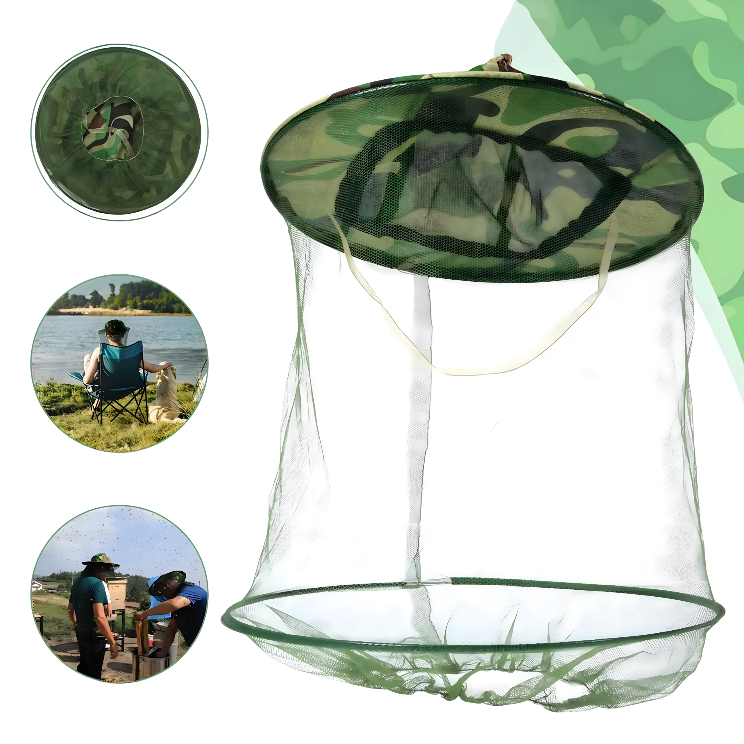 Široká krempa drží síť dál od obličeje a kamuflážní vzor se hodí pro rybáře, myslivce i outdoorové nadšence.