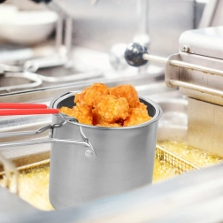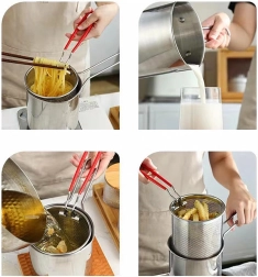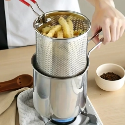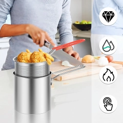 Praktický mini hrnec s fritovacím košíkem přináší bezpečné a čisté smažení oblíbených dobrot – od hranolků a kuřecích kousků po zeleninu. Jemně perforovaný koš umožňuje rychlé odkapání oleje, takže jídlo je křupavé a méně mastné. Nerezová ocel 304 zaručuje dlouhou životnost, snadnou údržbu a neutrální chuť.