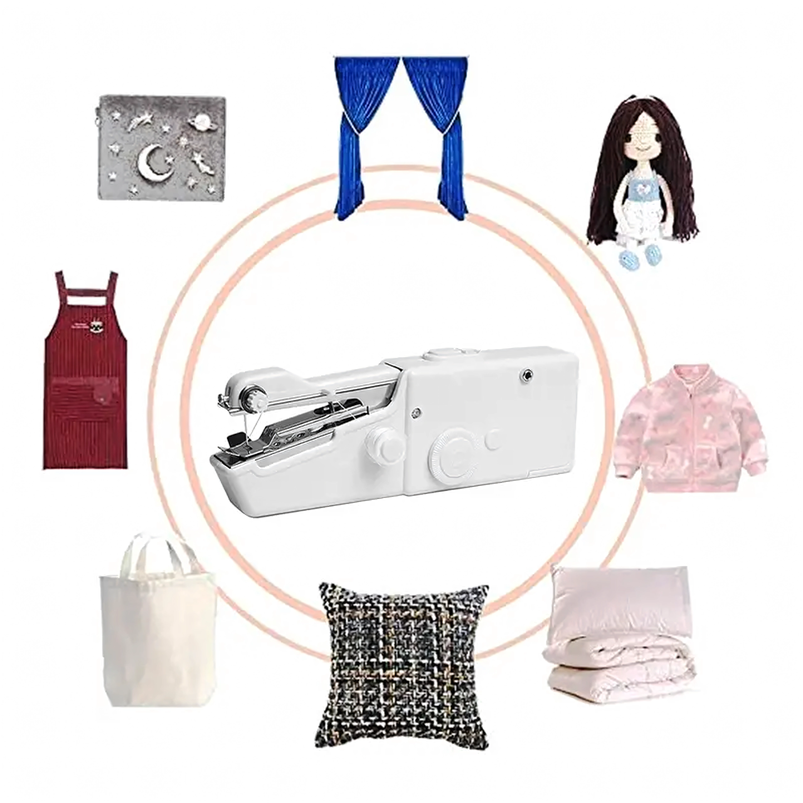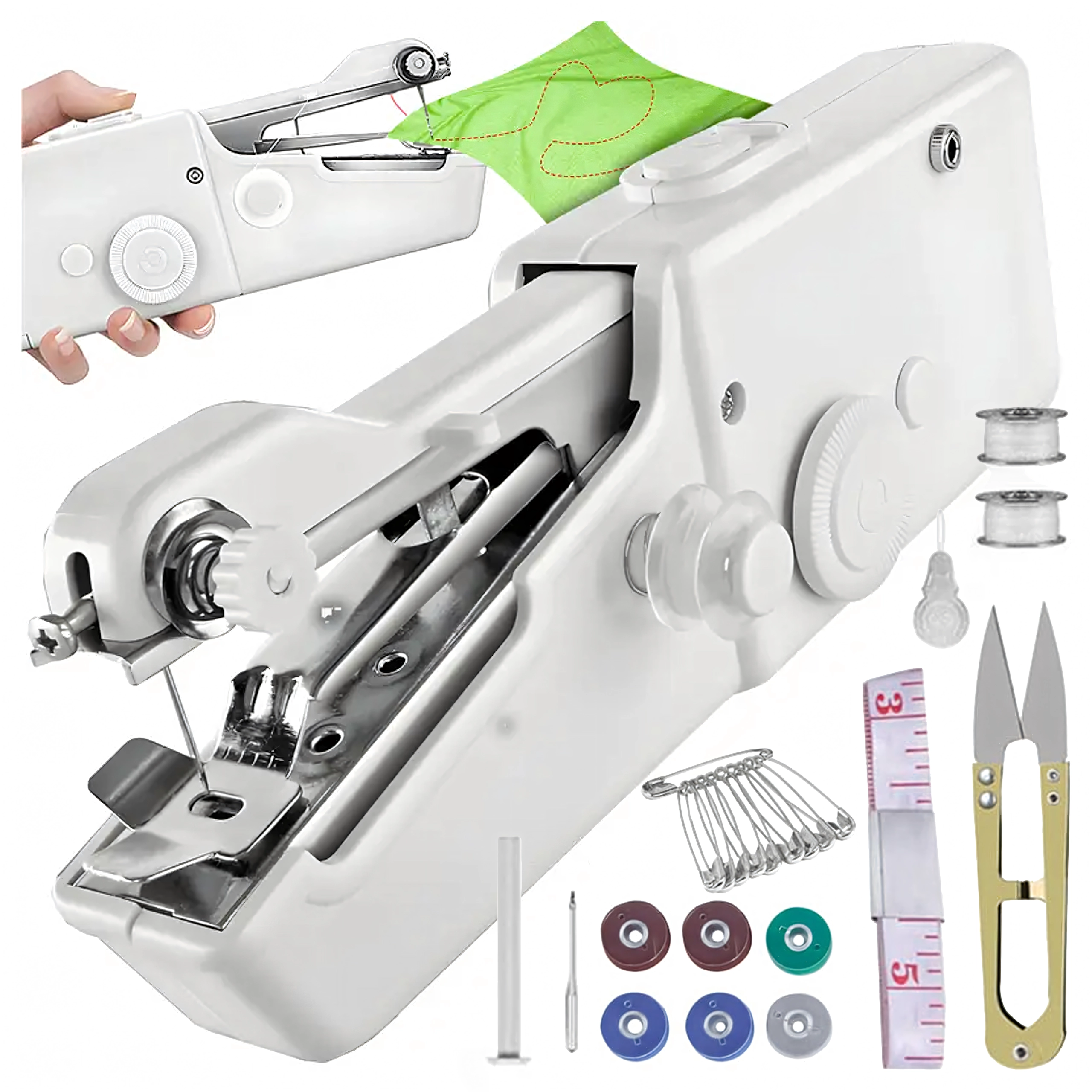 Lehký a přenosný design umožňuje šít jednou rukou – ideální pro okamžité zásahy bez rozkládání klasického stroje.
