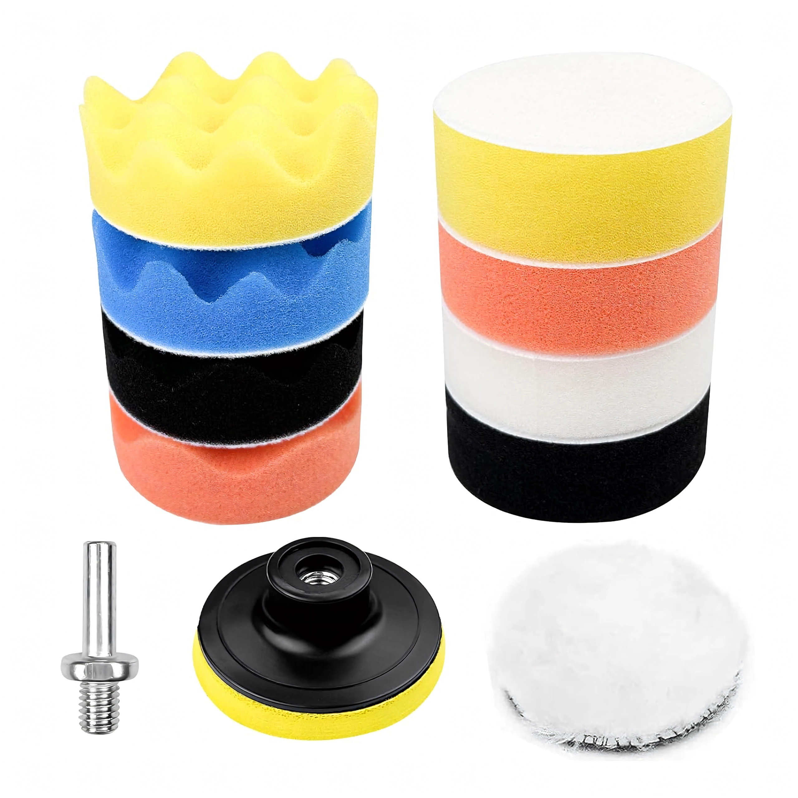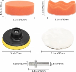 - 11 ks (pěnové pady různé tvrdosti + vlněný/fleece kotouč, unašeč, adaptér)