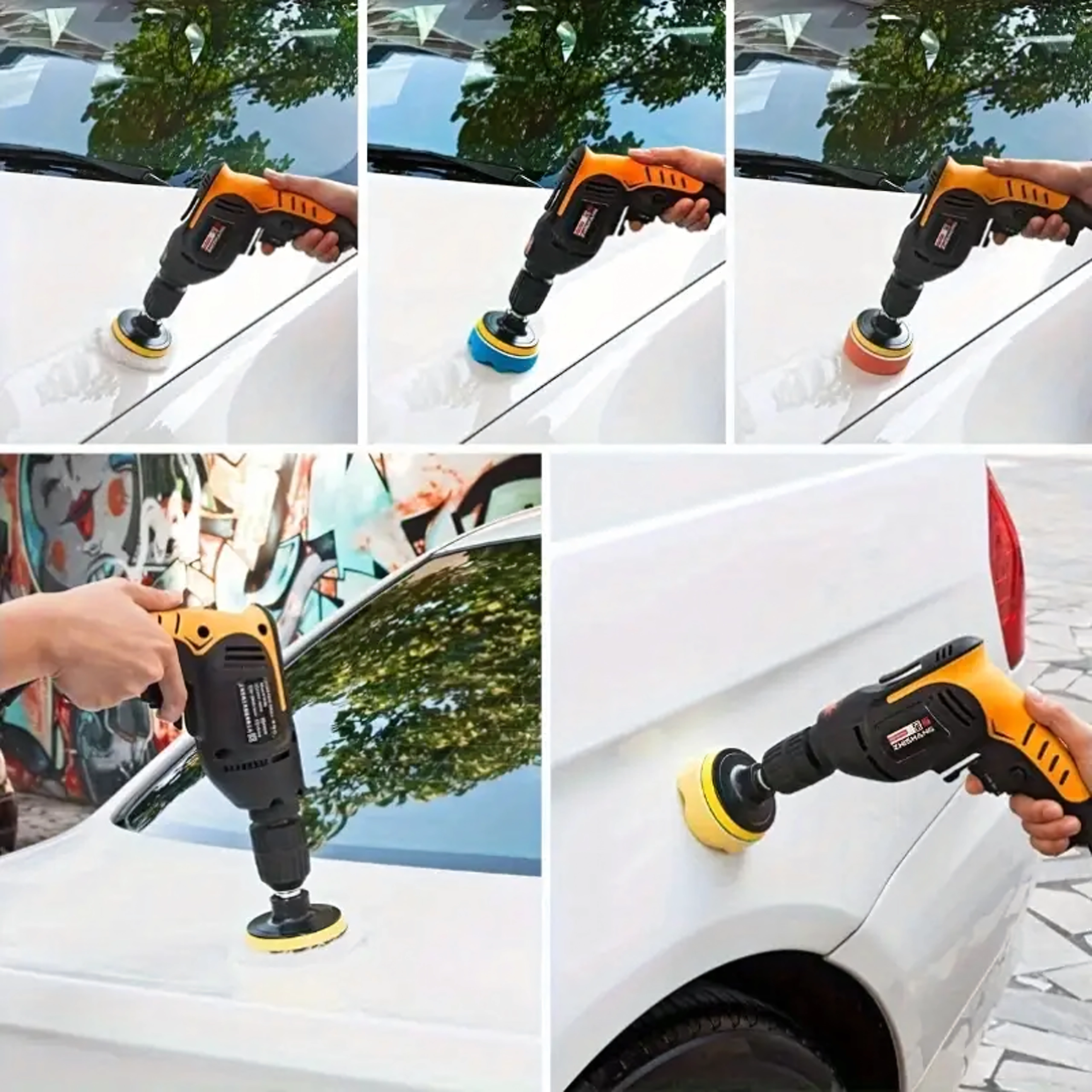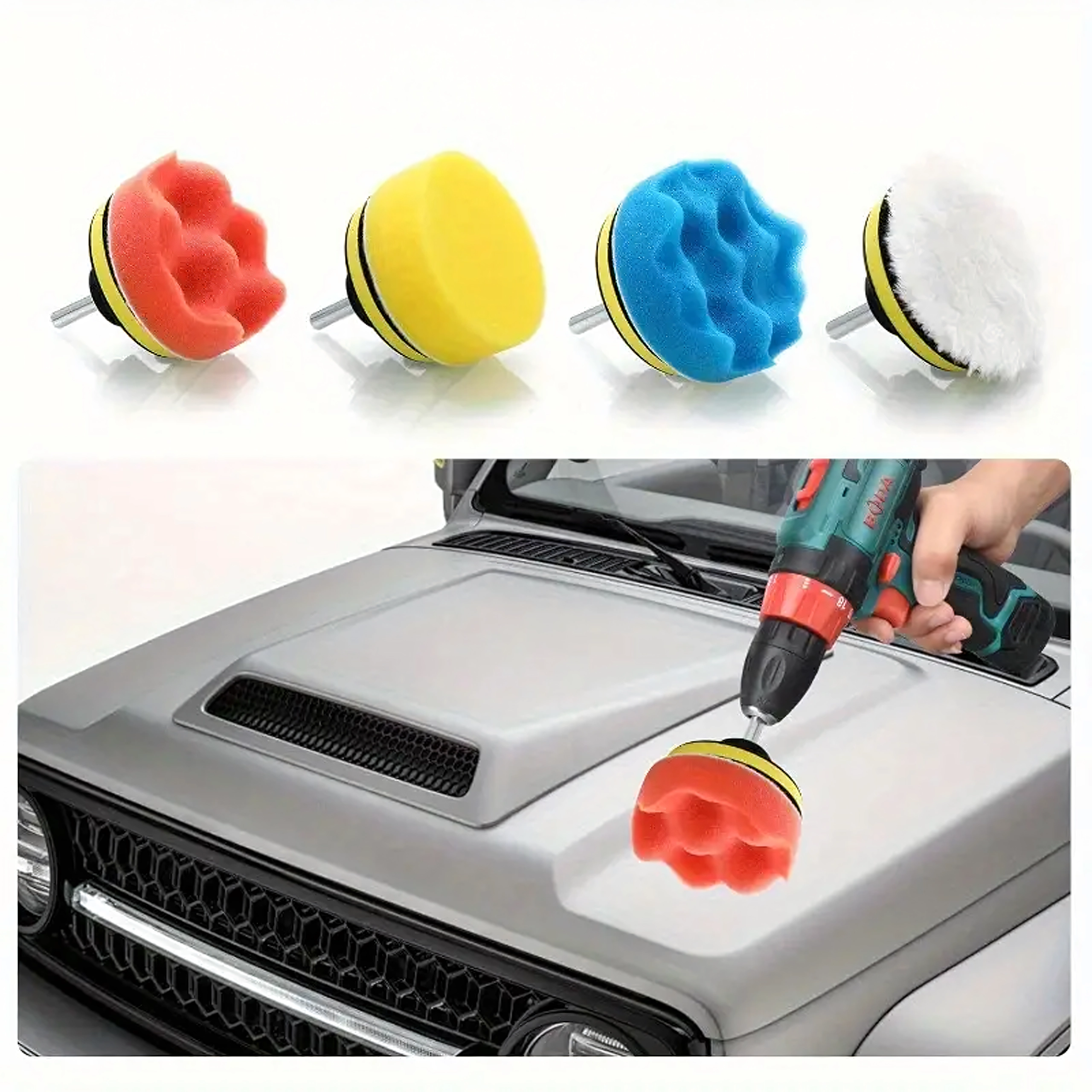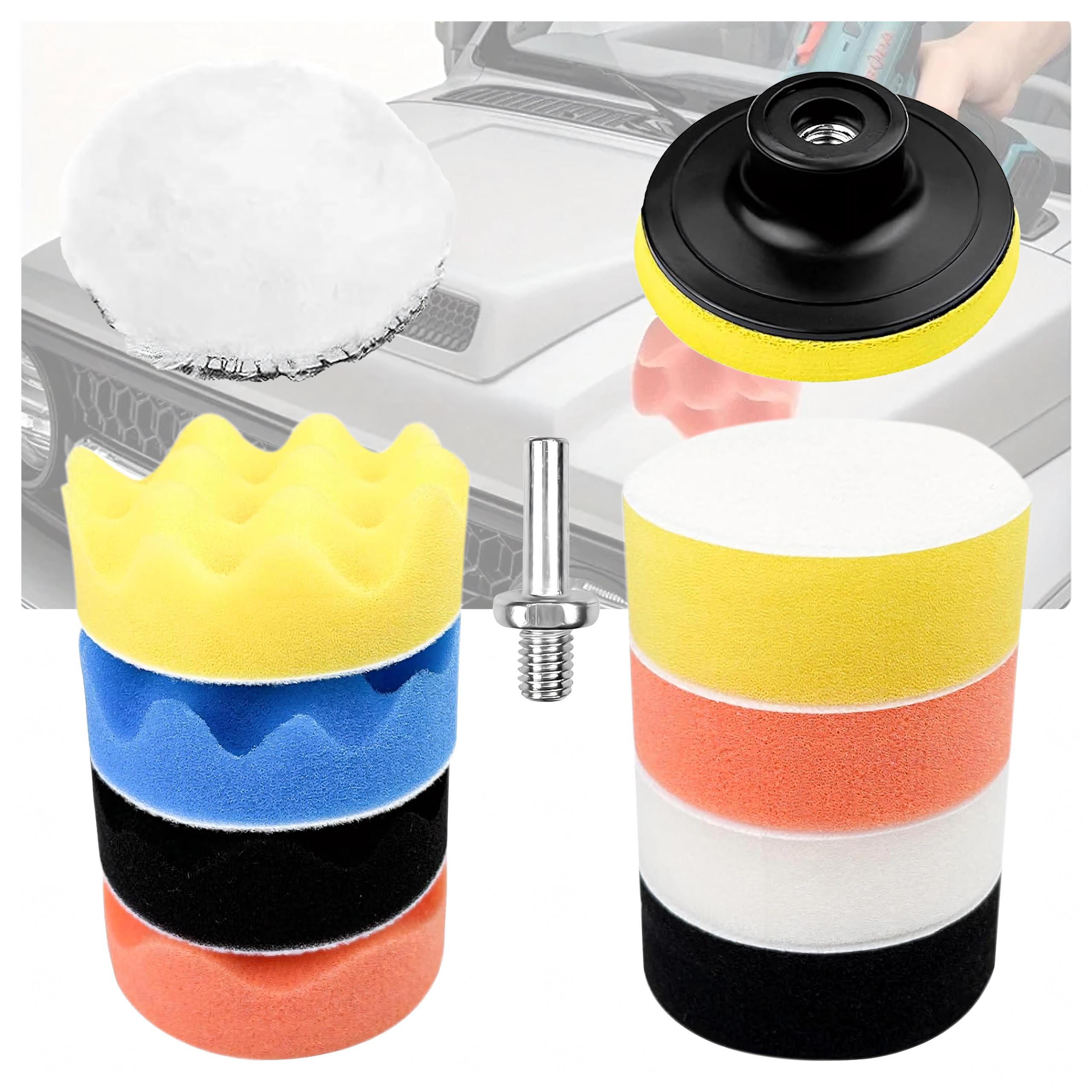 Sada obsahuje pěny různých hustot a vlněný kotouč – od korekce defektů až po finální rozleštění a vysoký lesk bez hologramů.