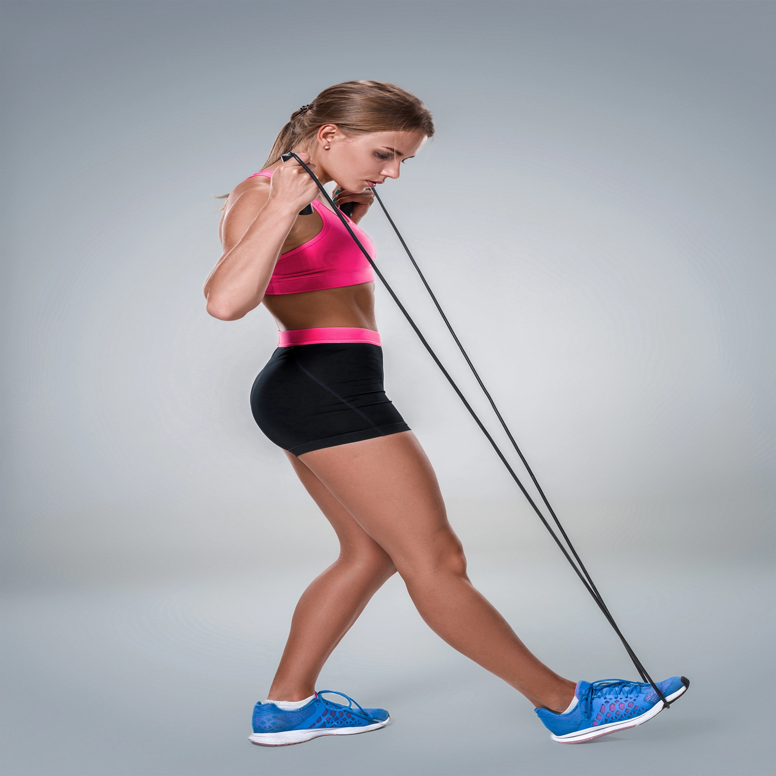 Lehké, tvarované rukojeti s protiskluzovým povrchem zvyšují komfort a kontrolu i při delších trénincích.