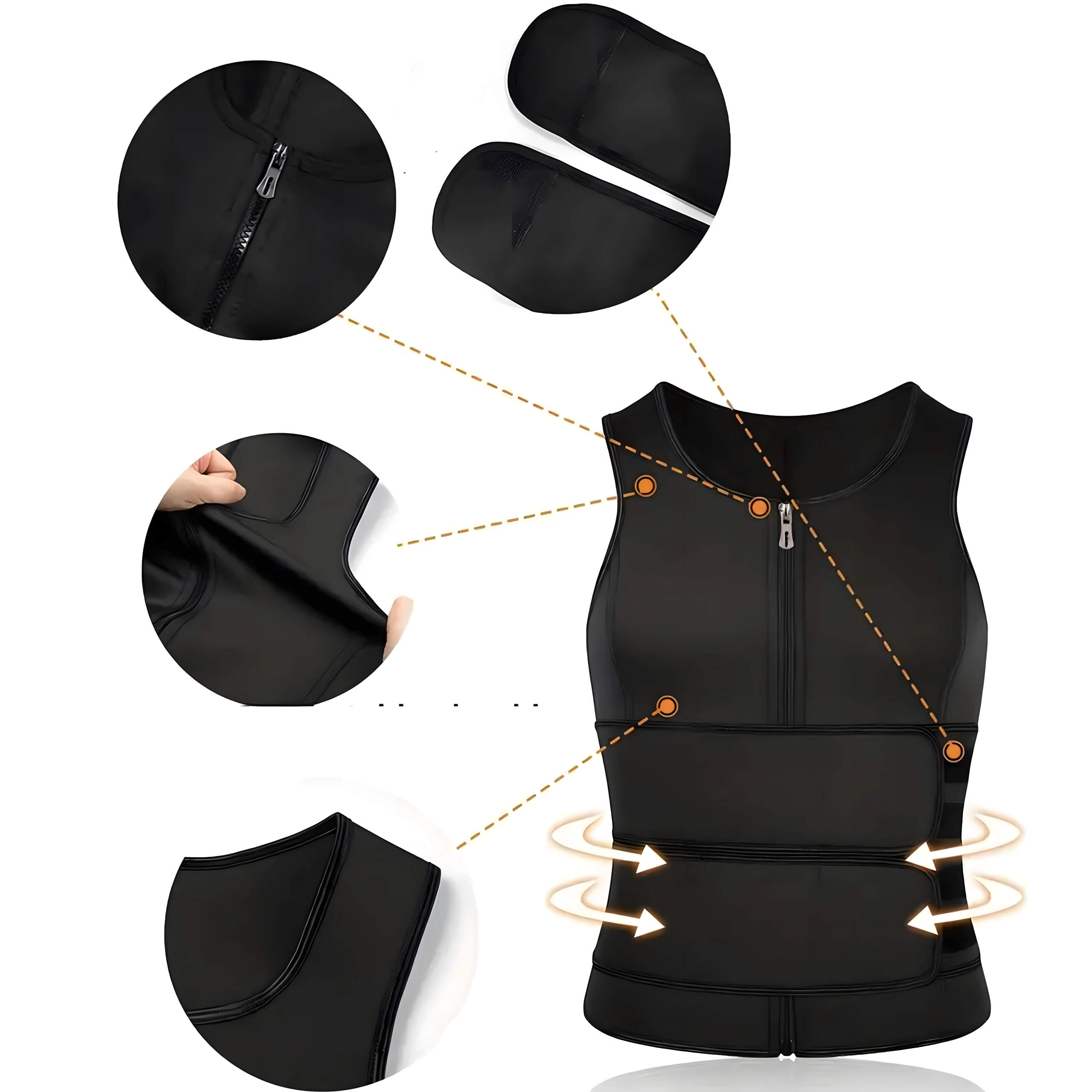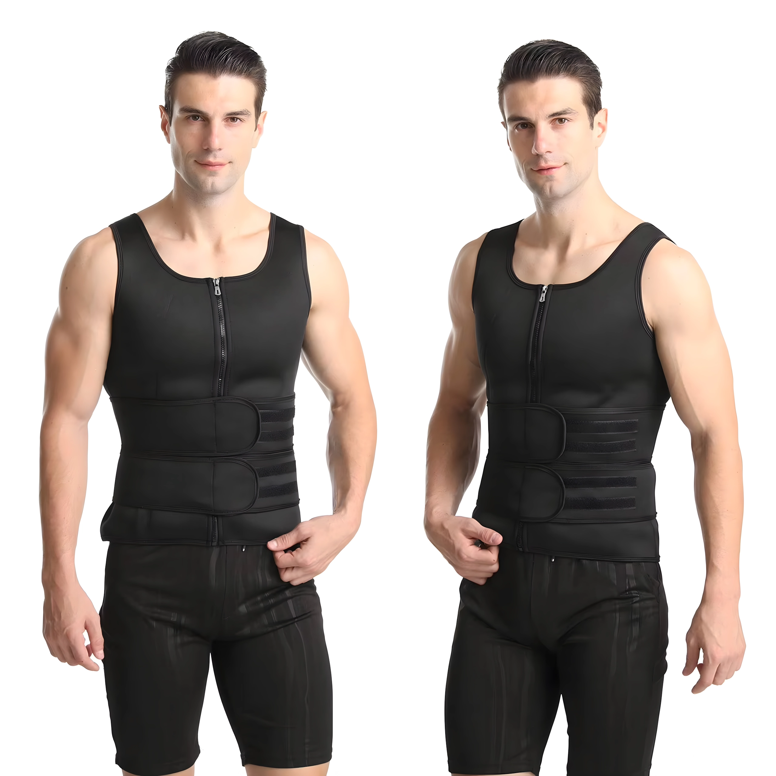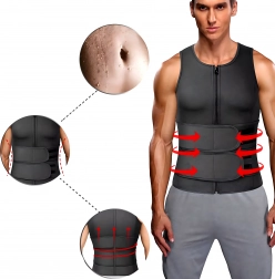 Tato pánská kompresní sauna vesta z kvalitního neoprenu zvyšuje teplotu těla během tréninku, čímž napomáhá rychlejšímu pocení a efektivnímu tvarování pasu. Zip po celé délce usnadňuje oblékání a dvě široké nastavitelné pásky na suchý zip umožní přesně nastavit míru stažení v oblasti břicha a středu těla.