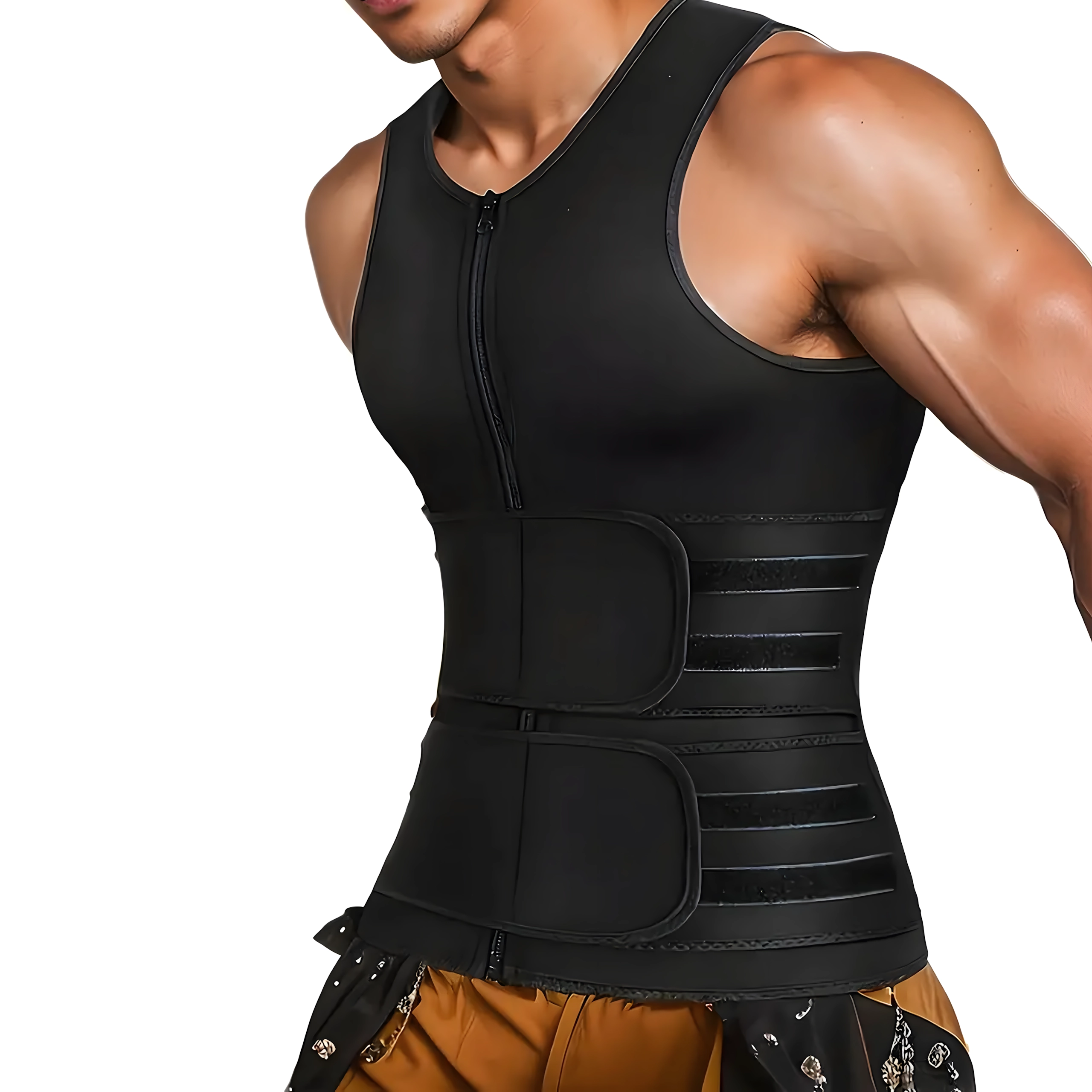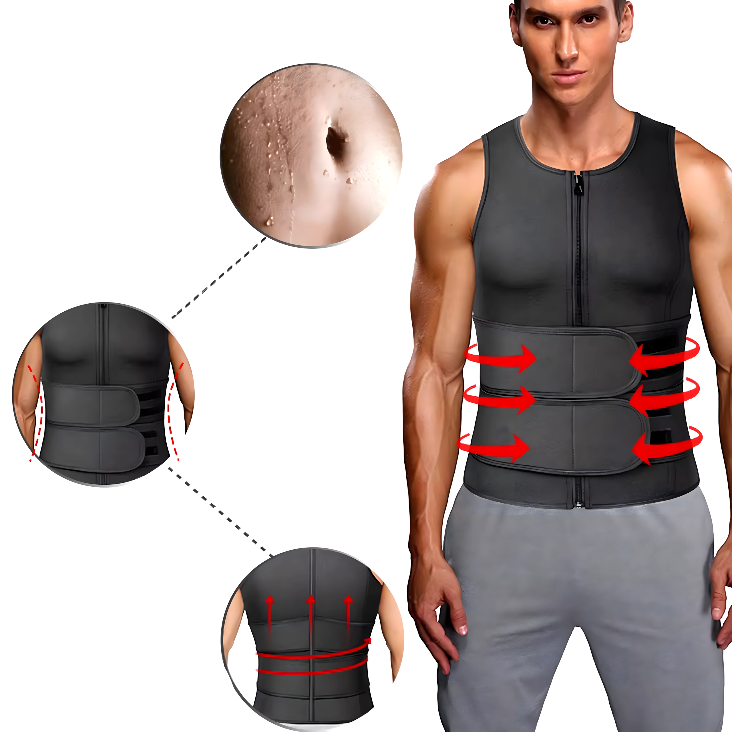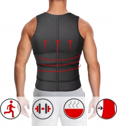 Tato pánská kompresní sauna vesta z kvalitního neoprenu zvyšuje teplotu v oblasti trupu, čímž podporuje pocení a efektivnější spalování kalorií. Zároveň stabilizuje střed těla, zlepšuje posturu a snižuje únavu zad při posilování, běhu i kardiu. Přední zip a široké nastavitelné pásy umožňují rychlé obléknutí a přesné dotažení podle potřeby.