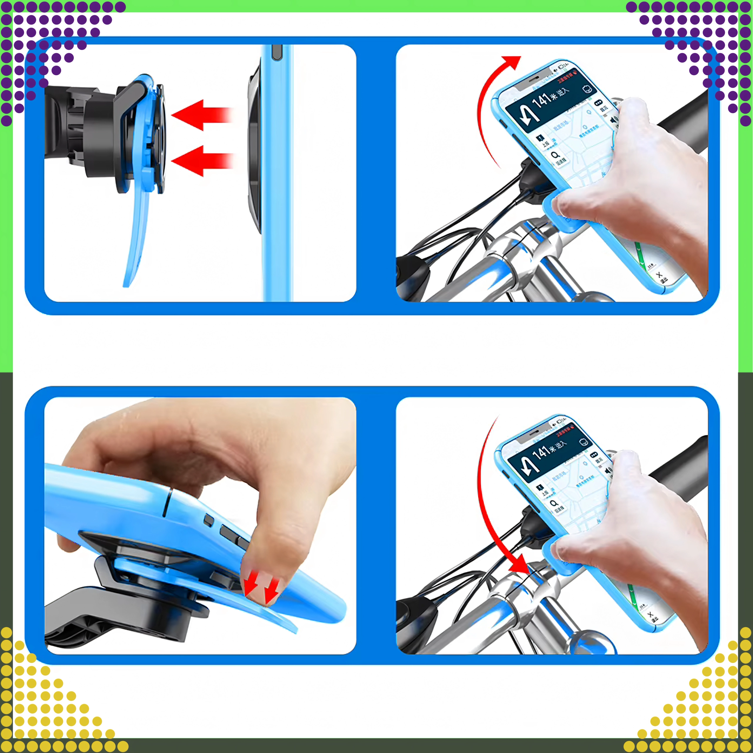 Praktický držák telefonu na řídítka pro kolo, motorku i čtyřkolku zajistí bezpečné a pohodlné uchycení smartphonu během jízdy. Kompatibilní s telefony 4,7–7,2" a průměry řídítek 22,2–28,6 mm. Díky pevné svorce a spolehlivému uzamykacímu mechanismu drží telefon stabilně i v nerovném terénu.