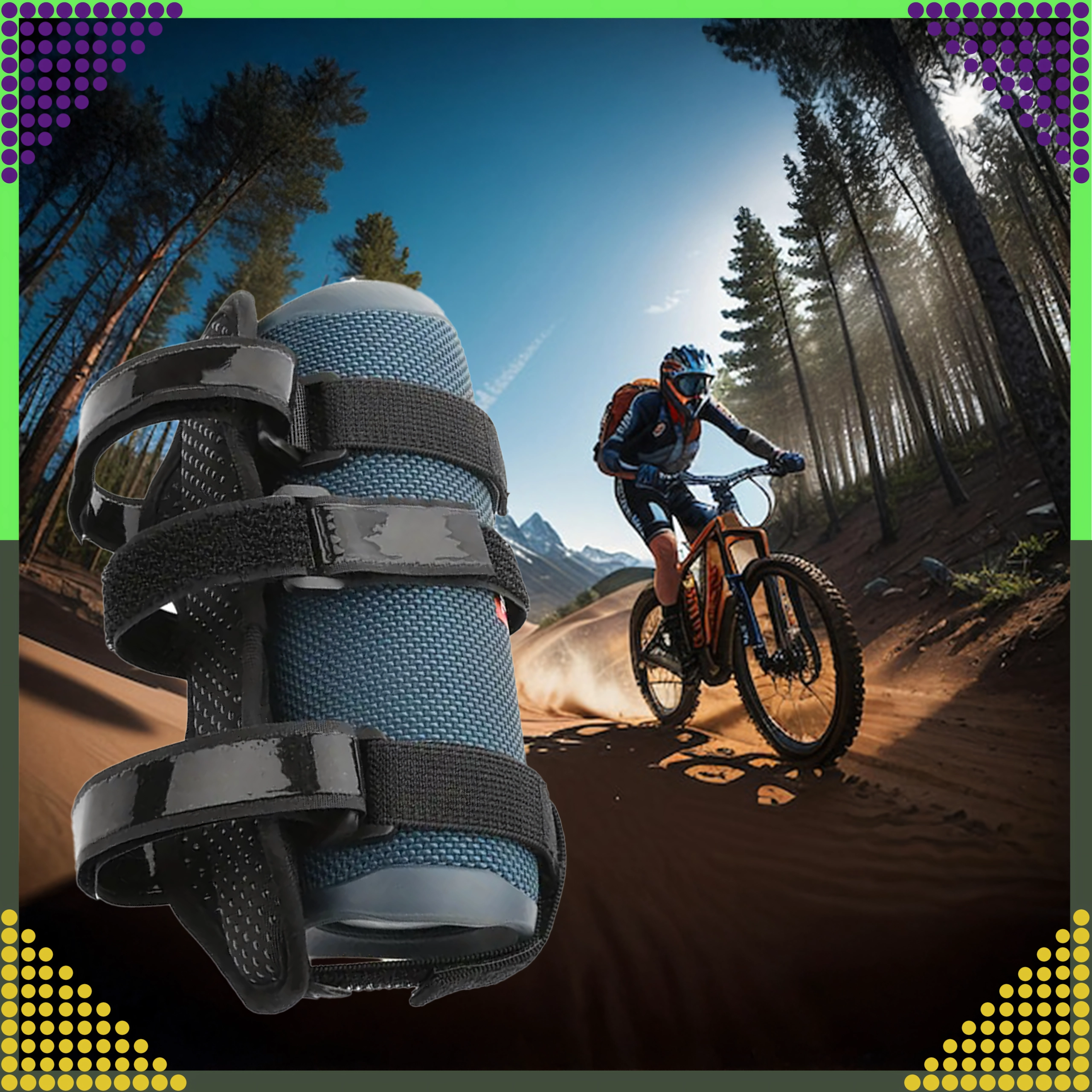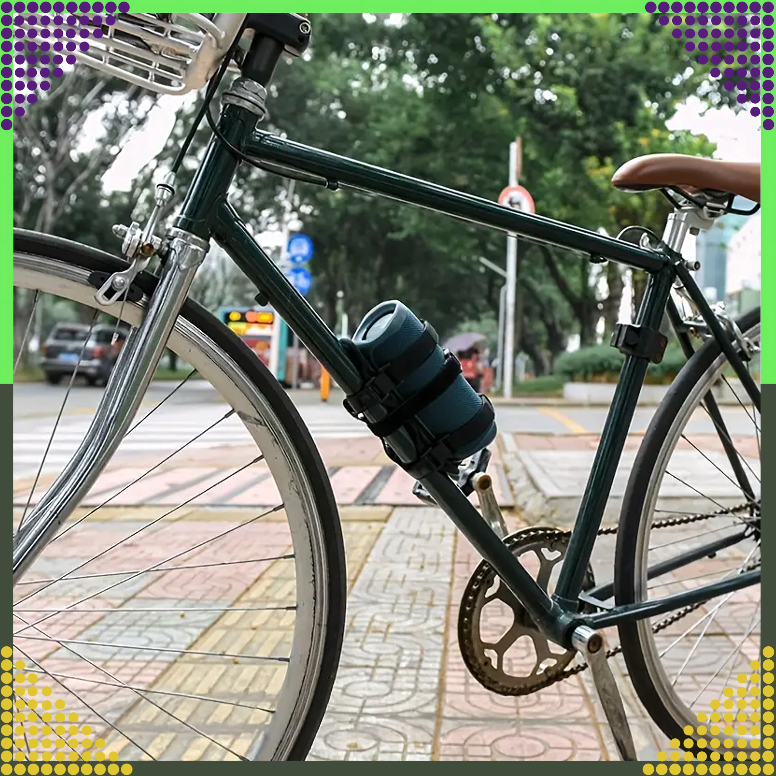 Snadno přichytíte přenosný reproduktor, bidon nebo pouzdro s nářadím. Nastavitelná šířka popruhů sedí na různé průměry.