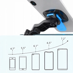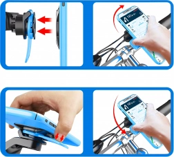 Držák umožňuje plynulé natočení telefonu na výšku i šířku a rychlé uvolnění pomocí postranních tlačítek pro pohodlné ovládání.