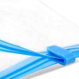Pytle jsou vyrobeny z odolného vícevrstvého materiálu (nylon + PE), který je pevný, nepropouští vlhkost a odolává protržení. Použití je snadné: naplňte, uzavřete zip jezdcem, přiložte hubici vysavače k ventilu, odsajte vzduch a uzavřete krytku.
