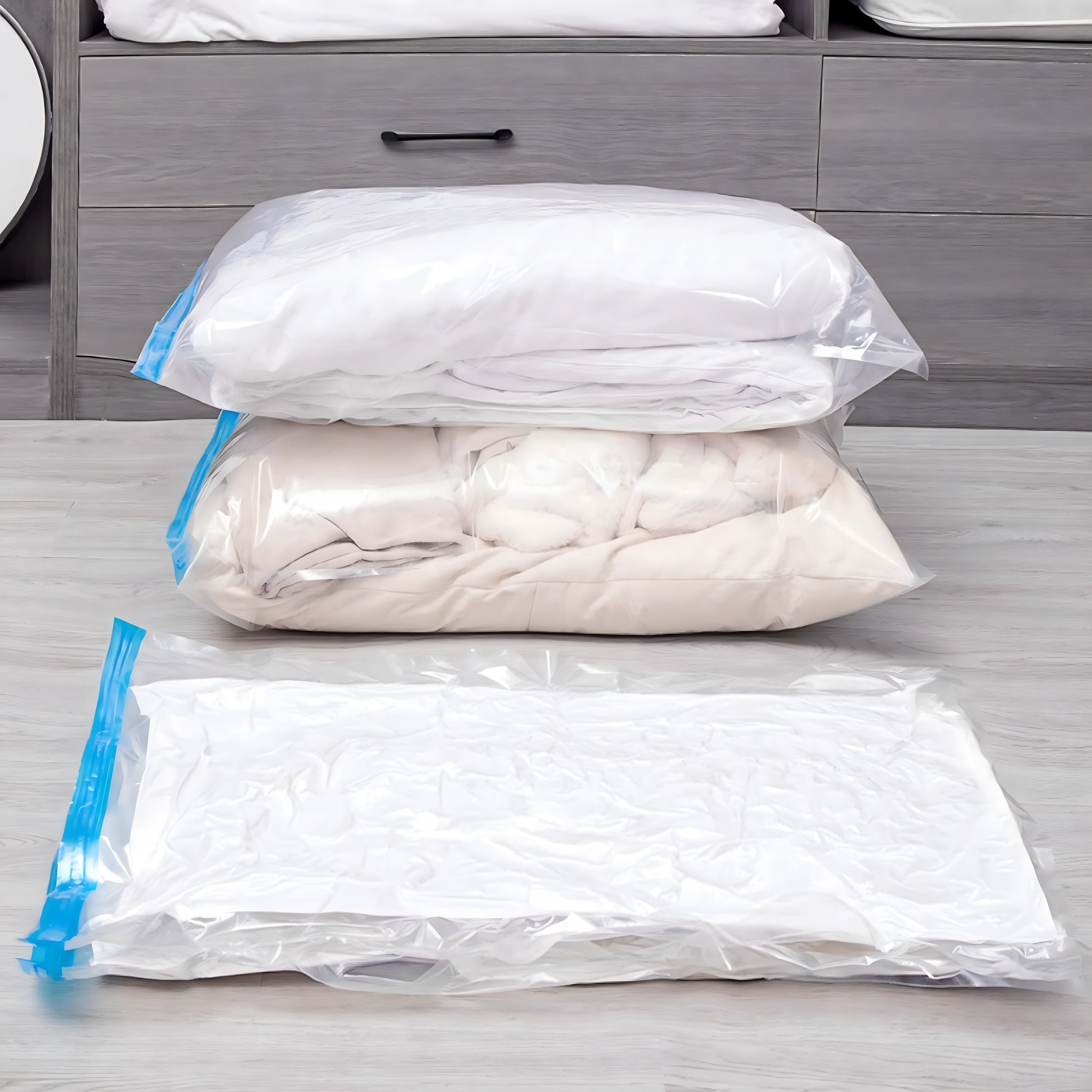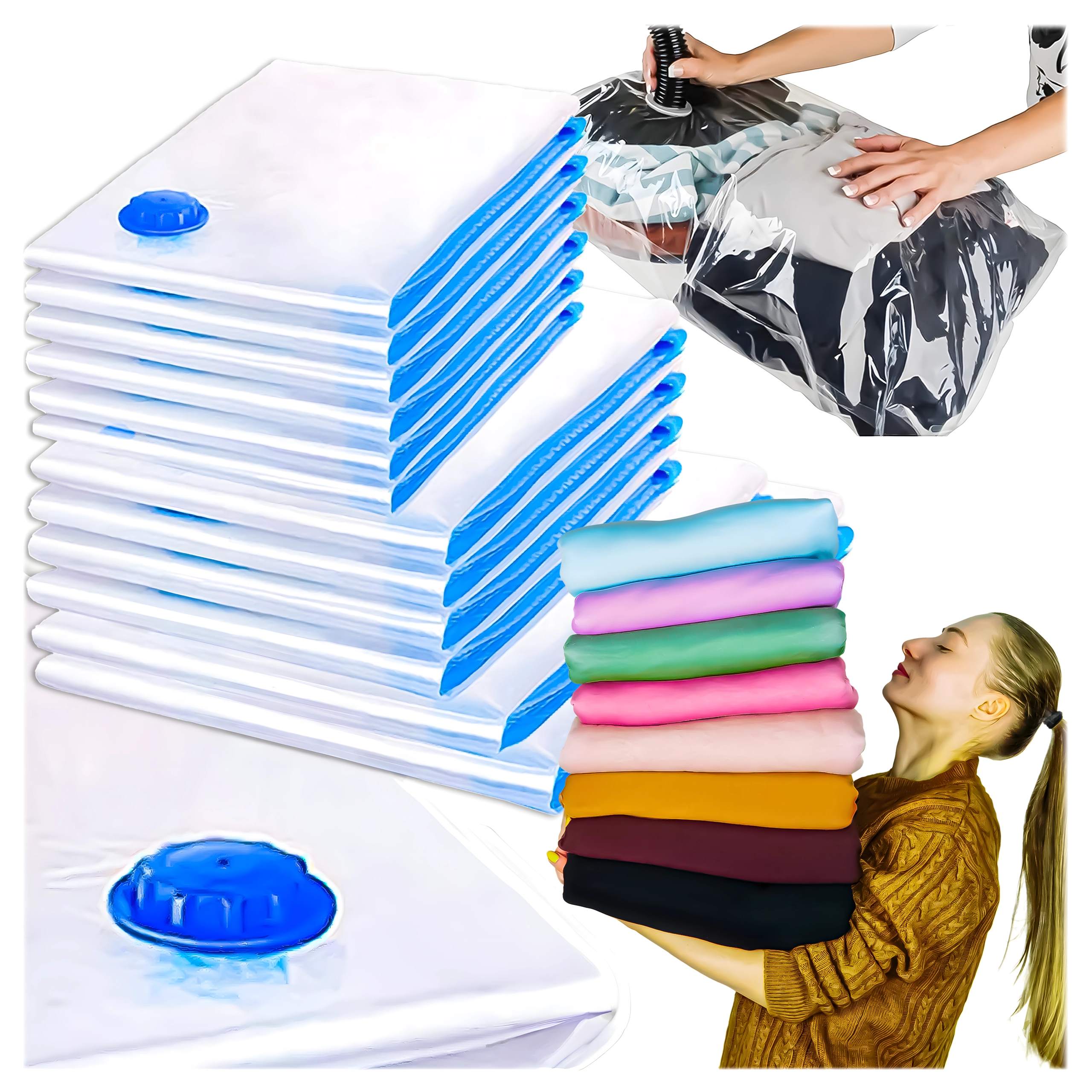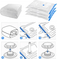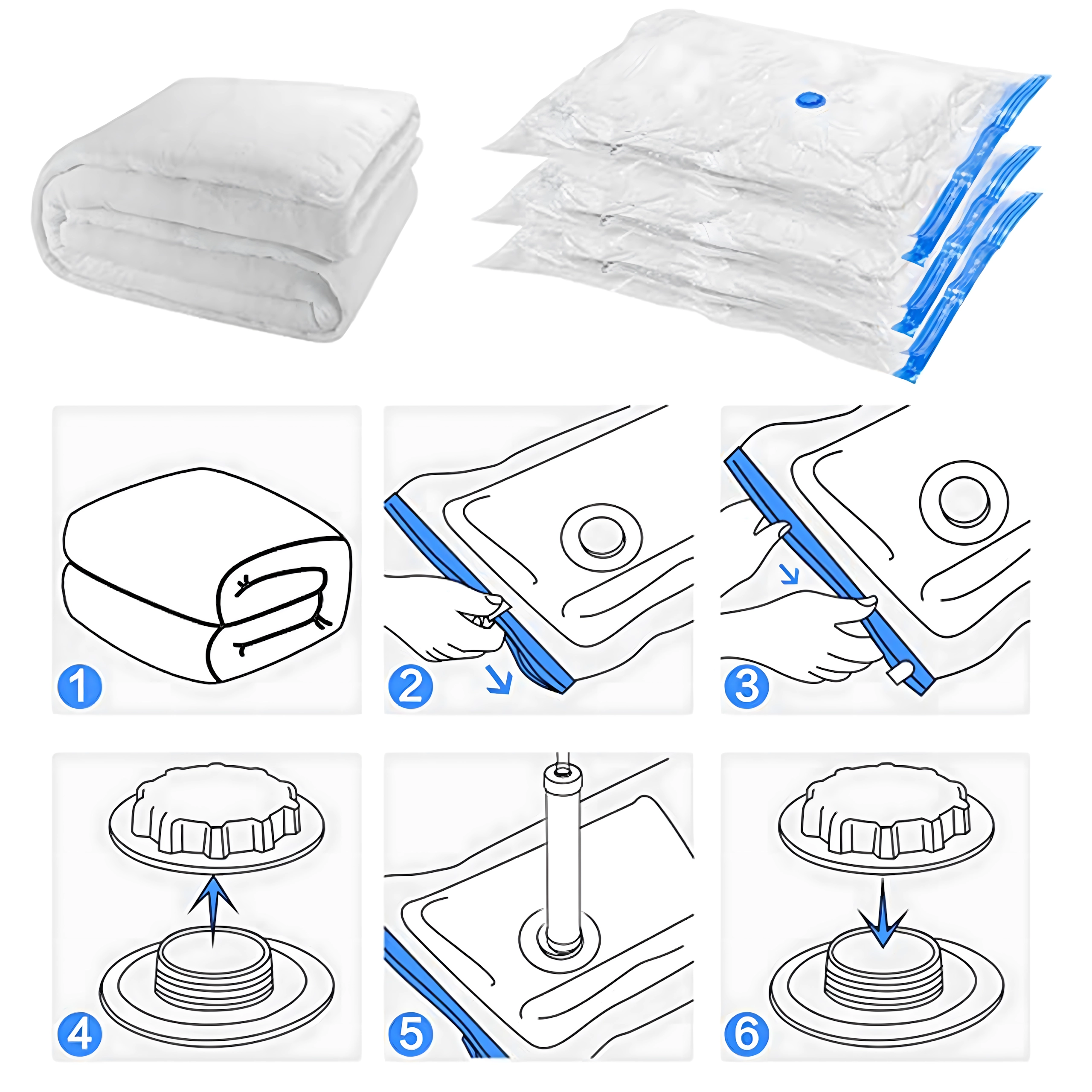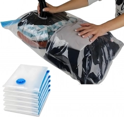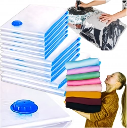 Udělejte pořádek a získejte více místa díky sadě vakuových pytlů pro domácnost. Pytle jsou znovupoužitelné, mají dvojitý zip a vzduchotěsný ventil pro rychlou kompresi pomocí vysavače nebo pumpy. Spolehlivě chrání před vlhkostí, prachem, pachy a škůdci a jsou ideální pro sezónní oblečení, deky, peřiny a polštáře.