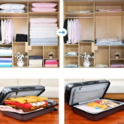 Kompresí oblečení a ložního prádla získáte více prostoru pro cestování i domácí skladování. Udržte věci přehledně srovnané a chráněné.