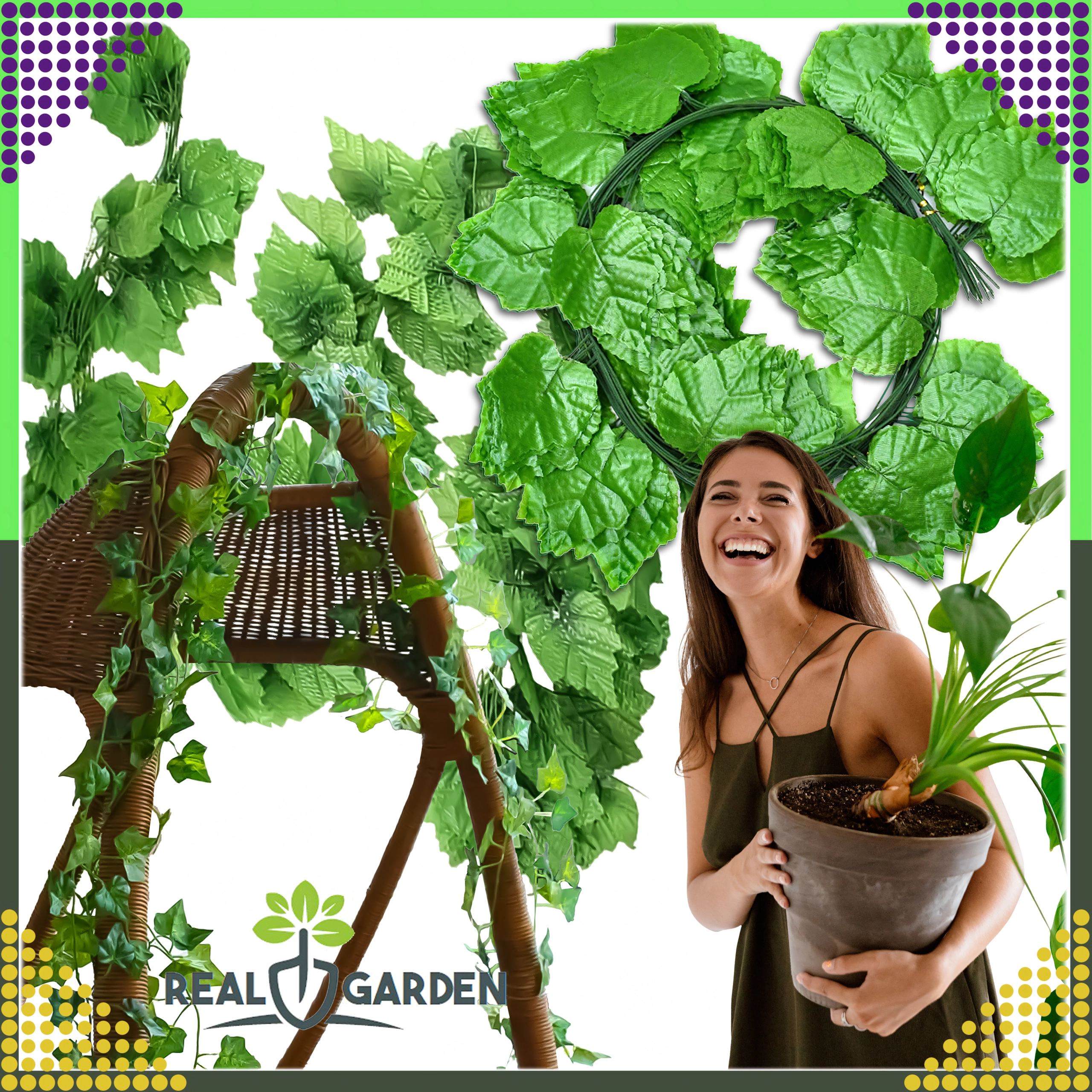 Umělý břečťan je elegantní řešení, jak dodat prostoru svěží přírodní vzhled bez zalévání a péče. Drobné lístky a přirozené zbarvení působí jako živé, takže je ideální pro balkony, terasy, zahrady i interiér – od předsíně po obývací pokoj.