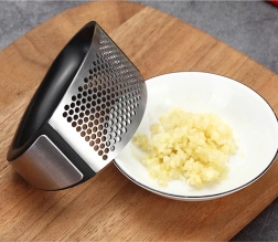 Zakřivená perforovaná plocha rozdrtí česnek plynulým kýváním tam a zpět. Rychlá práce bez bolesti zápěstí.