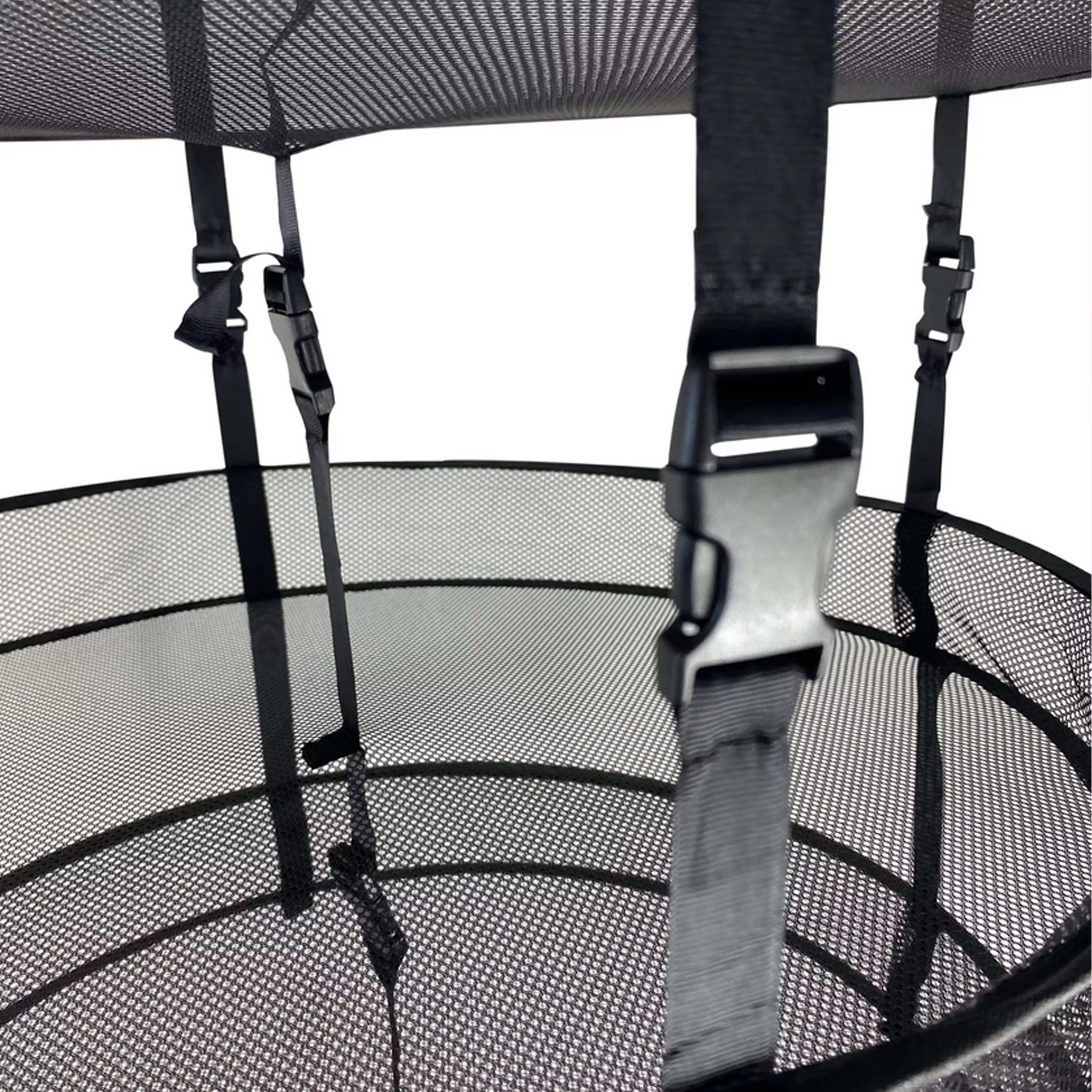 - Prodyšná síťovina, nylonové popruhy, pružné výztužné kroužky