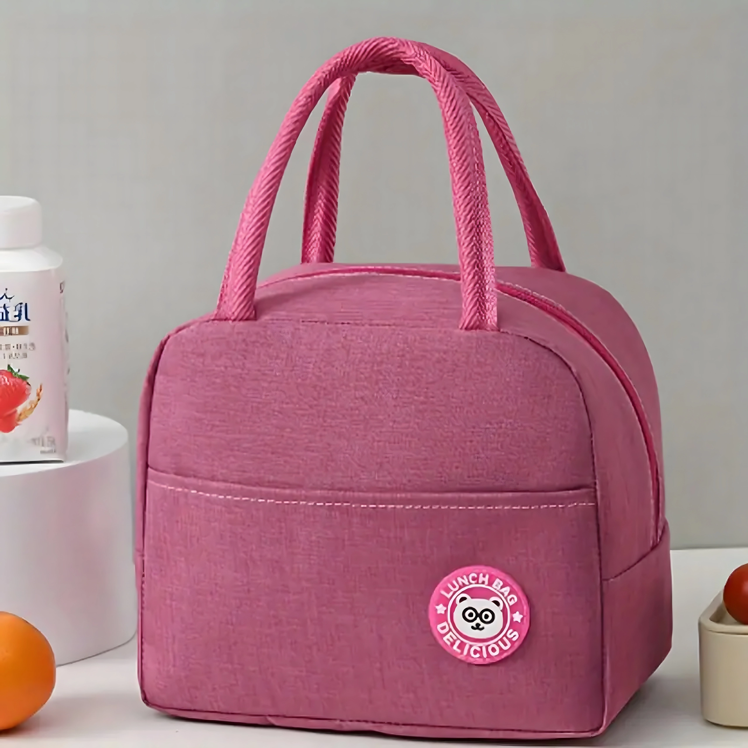 Růžová termo taška je vyrobena z odolného a lehkého materiálu, uvnitř je opatřena reflexní termo fólií pro dlouhodobé udržení teploty – studené i teplé. Zipové uzavírání chrání obsah a dvojité pohodlné uši zajišťují snadné nošení každý den.