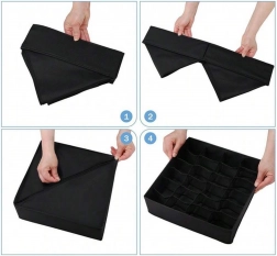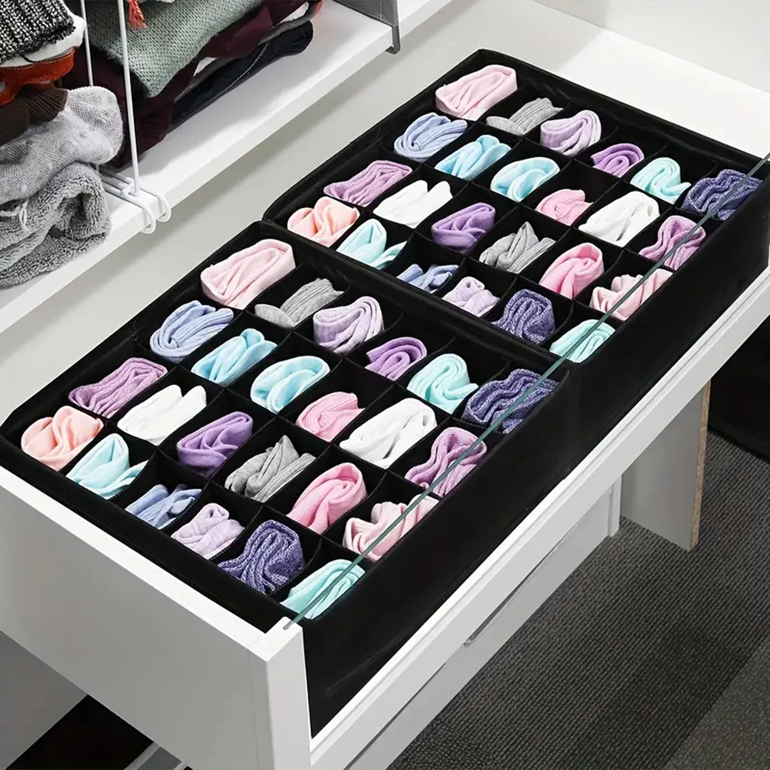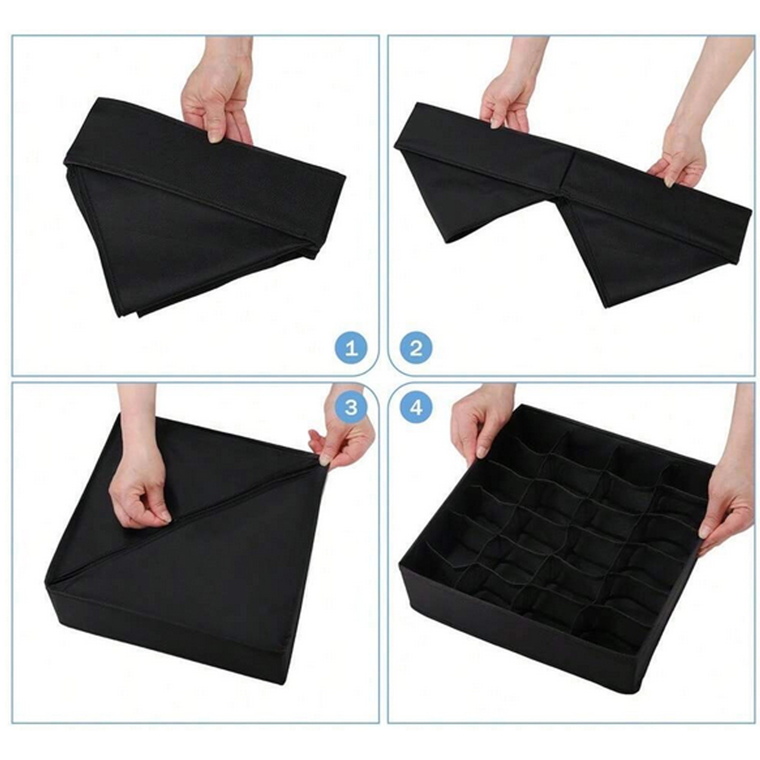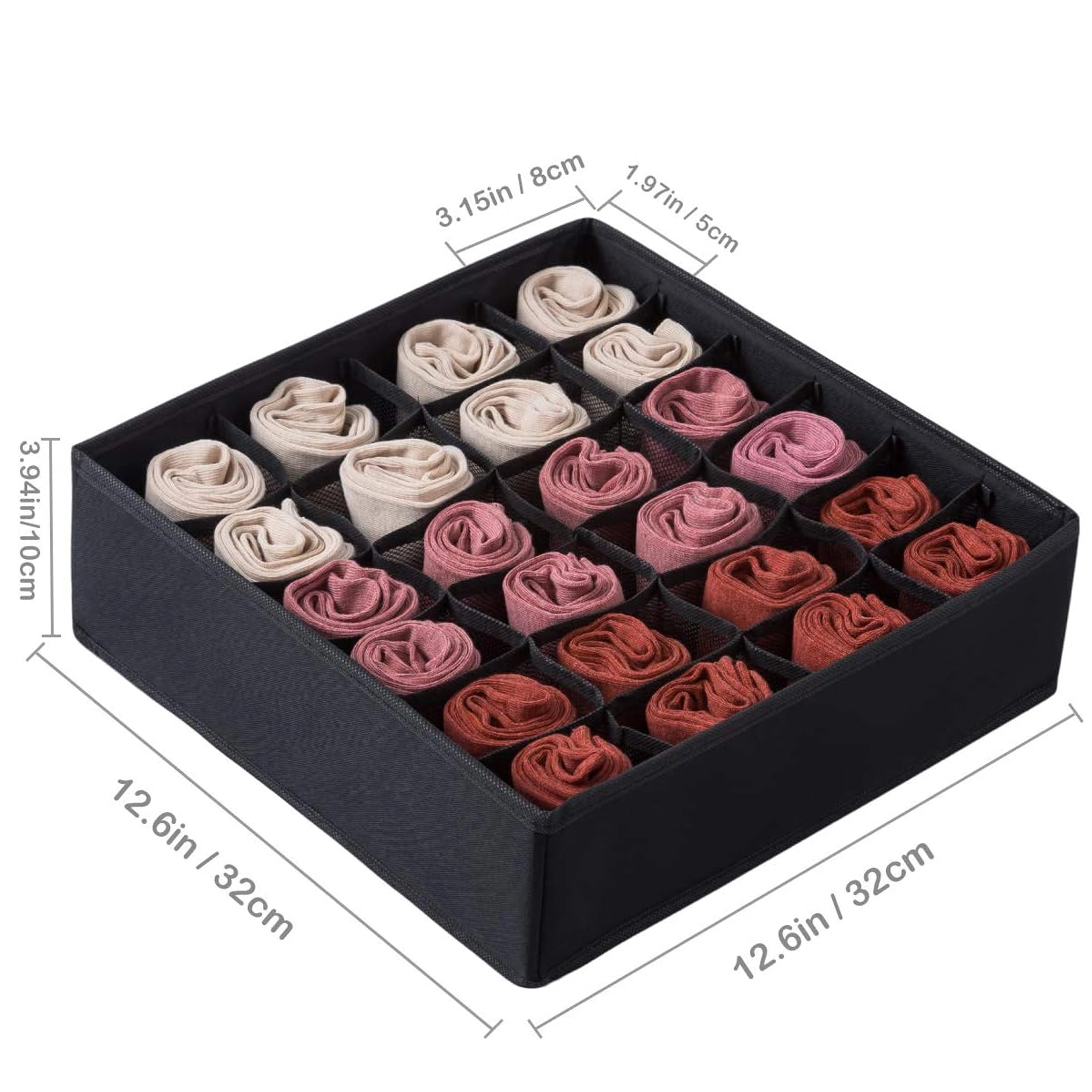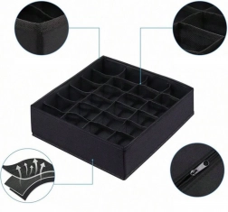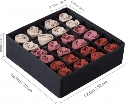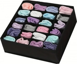 Rozměry 32 × 32 × 10 cm pasují do většiny běžných zásuvek a otevřených polic. Organizér je skvělou volbou pro ponožky, kalhotky, podprsenky, punčochy, kravaty i doplňky. Montáž je rychlá a jednoduchá – během pár sekund máte hotovo.