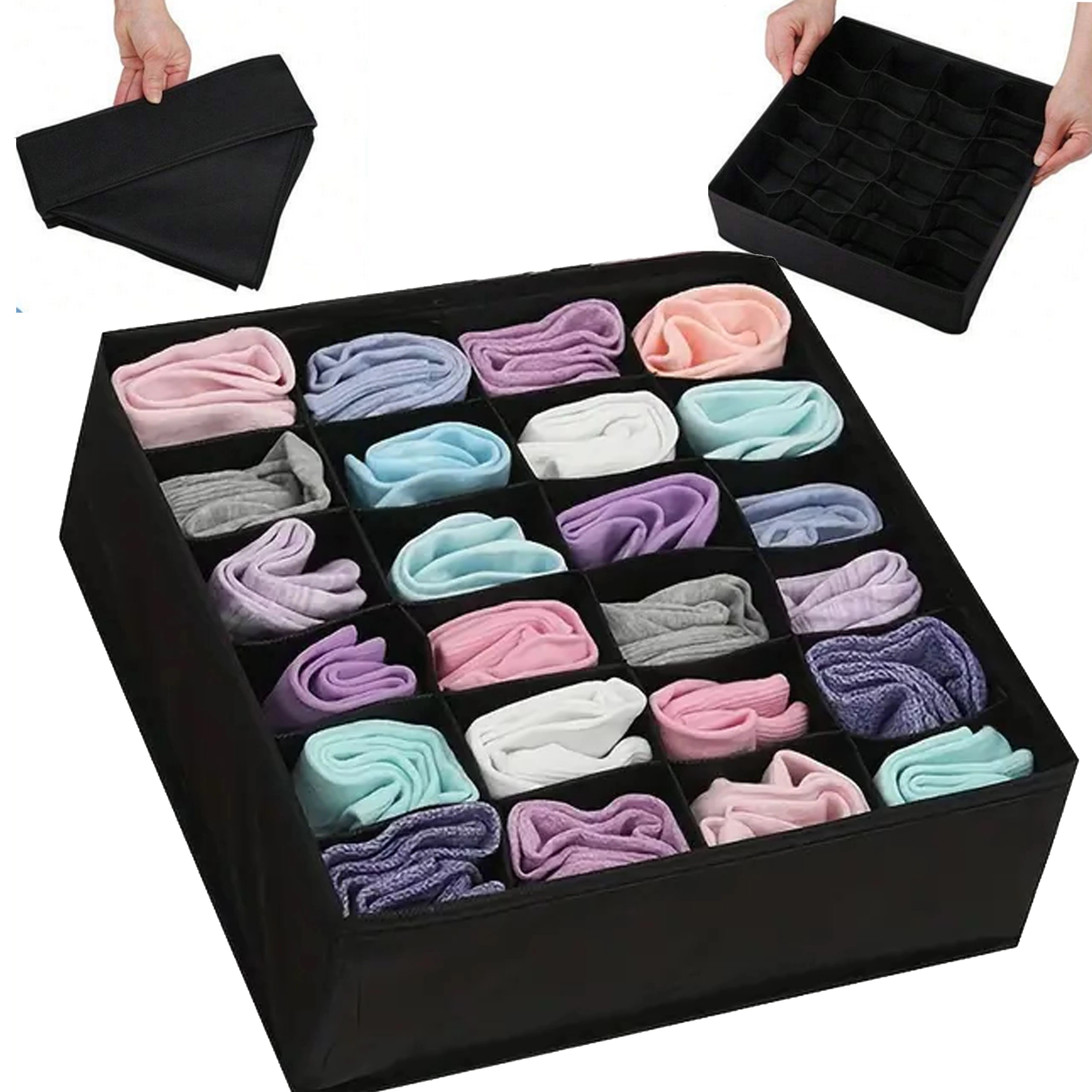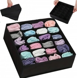 Praktický organizér do zásuvky pomůže zkrotit chaos v komodě i skříni. Díky 24 samostatným buňkám snadno roztřídíte prádlo a každý kousek bude mít své místo. Pevně zpevněné stěny drží tvar a usnadňují manipulaci, zatímco prodyšná netkaná textilie zajišťuje cirkulaci vzduchu.