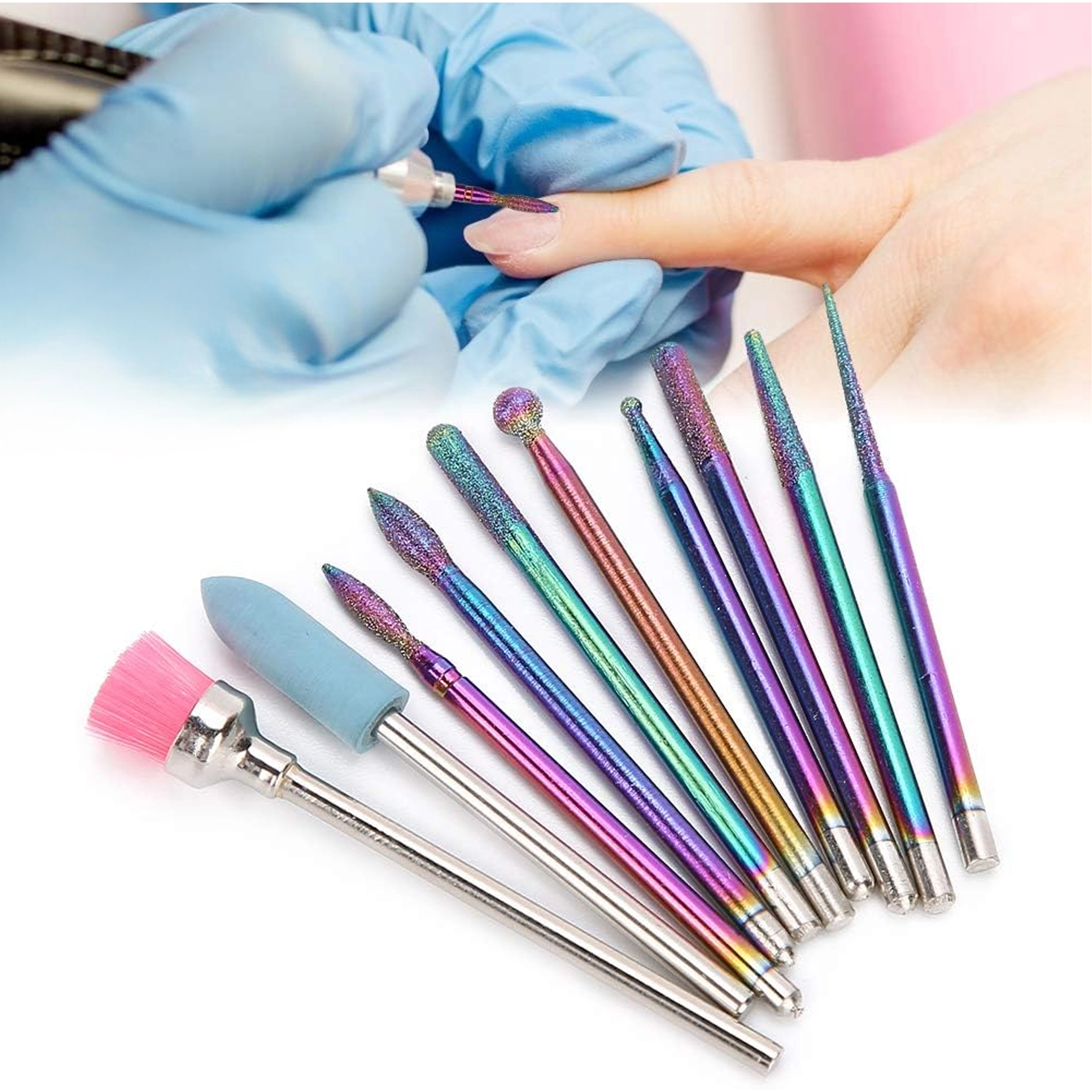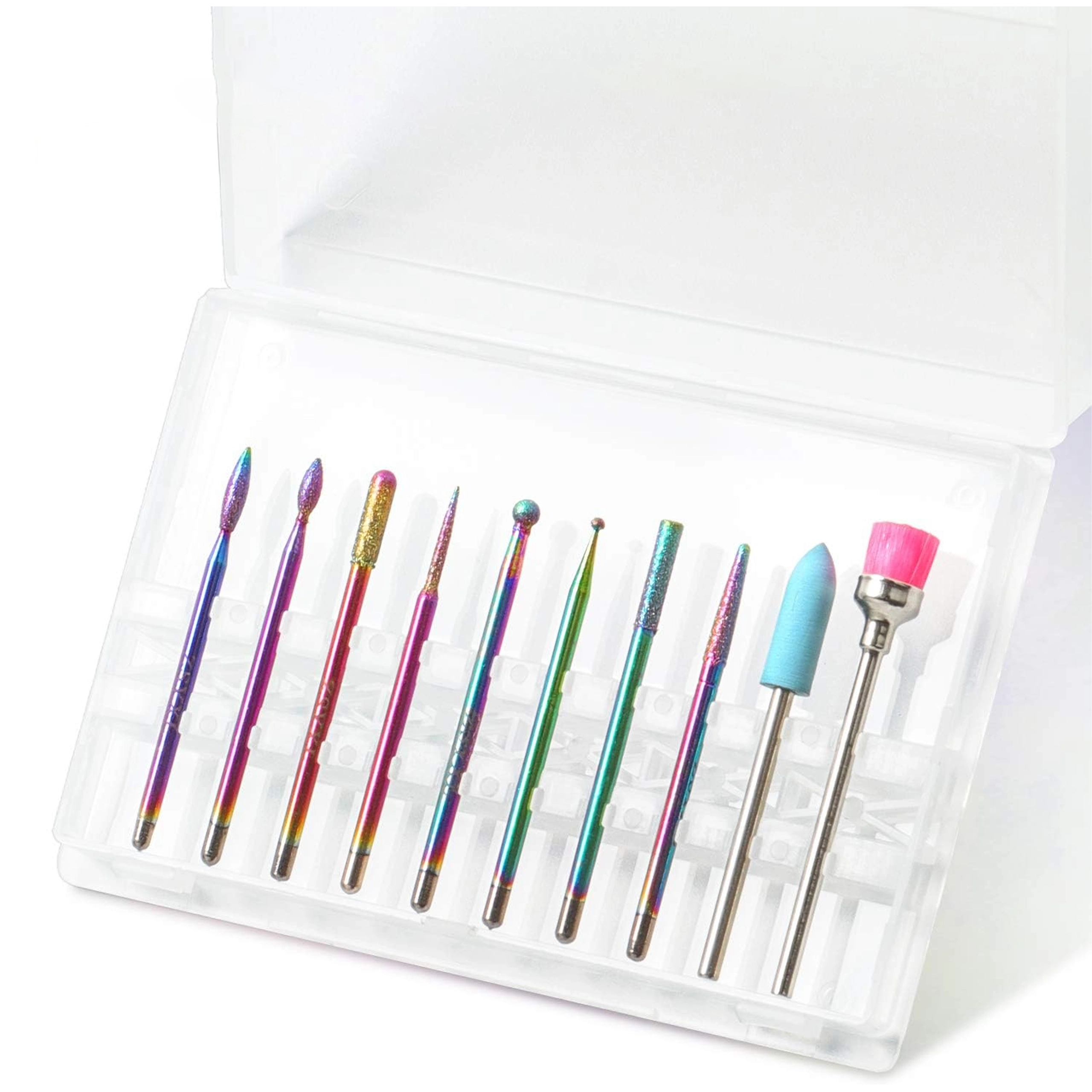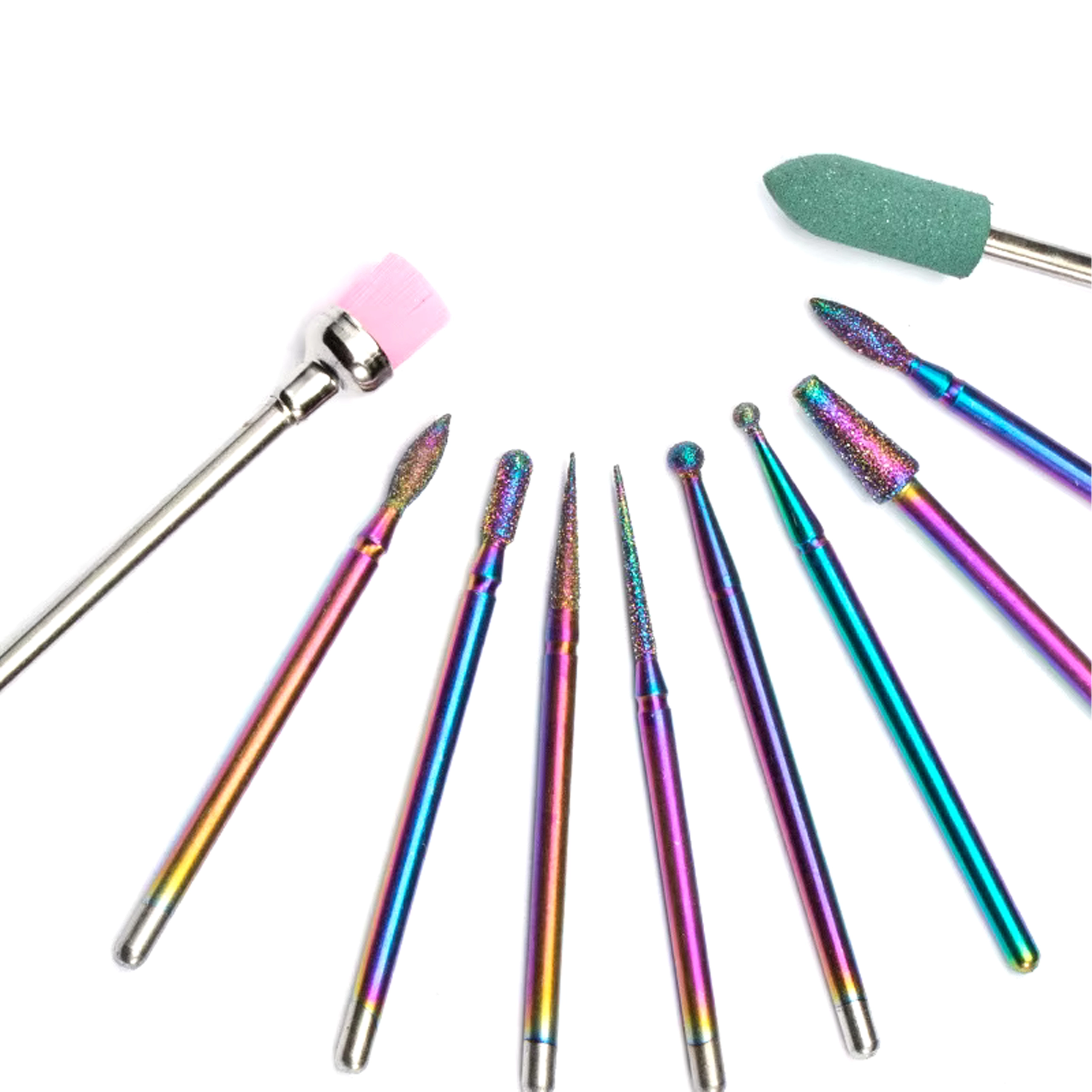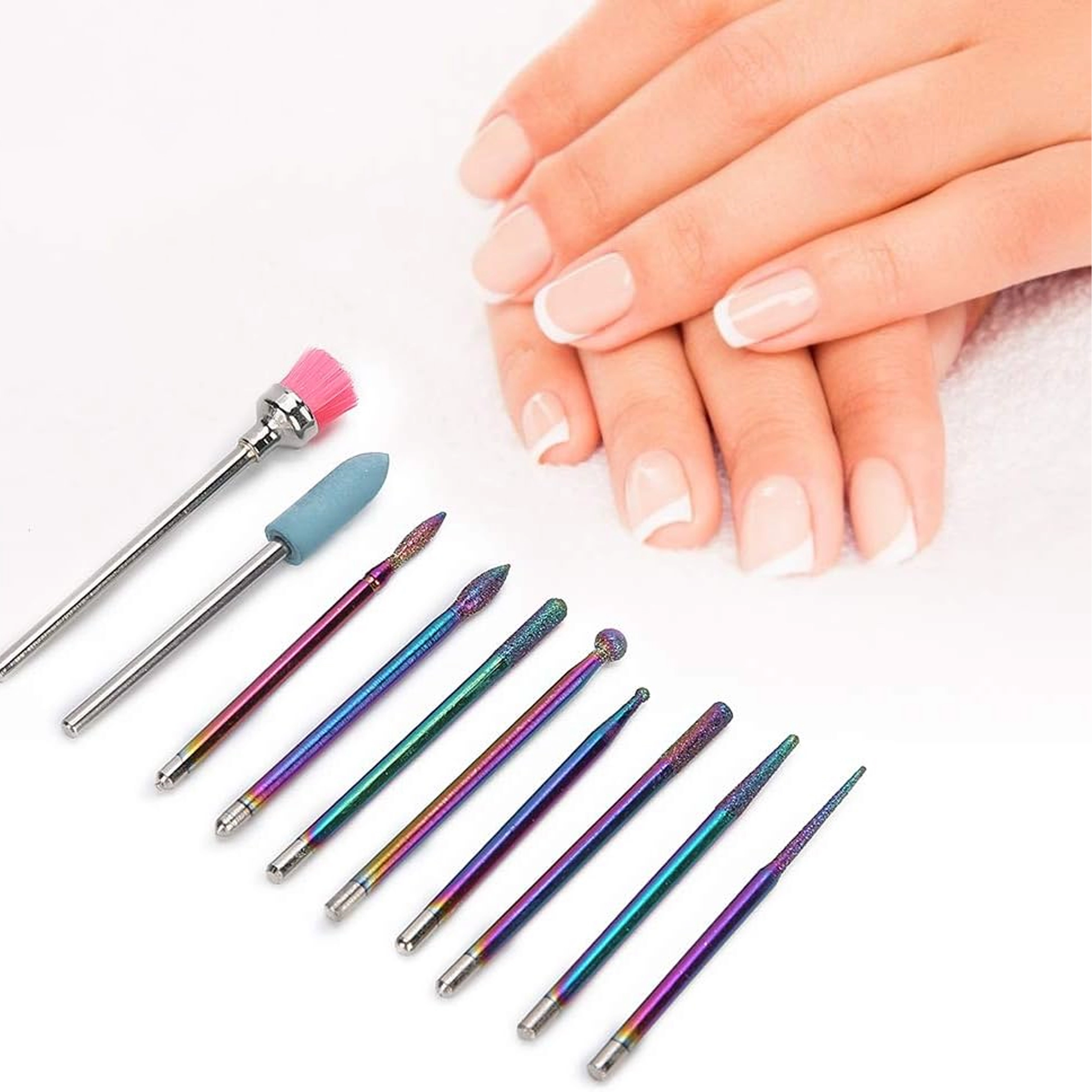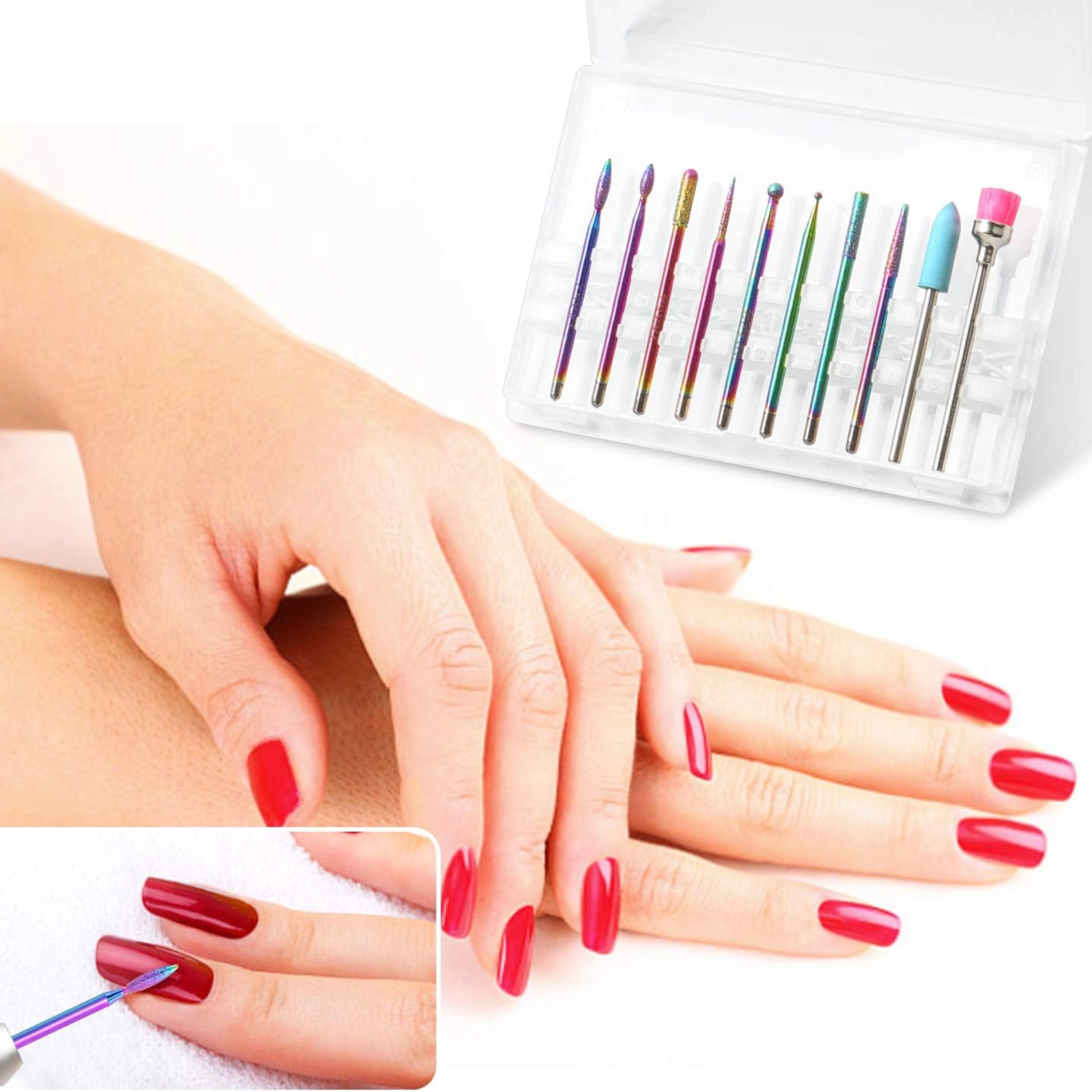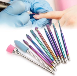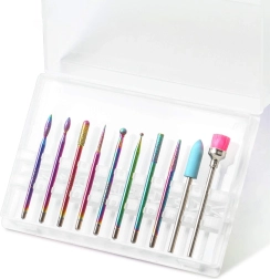 Tato univerzální sada 10 fréz byla navržena pro přesnou a pohodlnou práci při manikúře a pedikúře. Kombinuje diamantové a keramické nástavce pro šetrné odstranění ztvrdlé kůžičky, pilování a tvarování, čištění okolí nehtu i snižování ztuhlých vrstev gelu či akrylu.