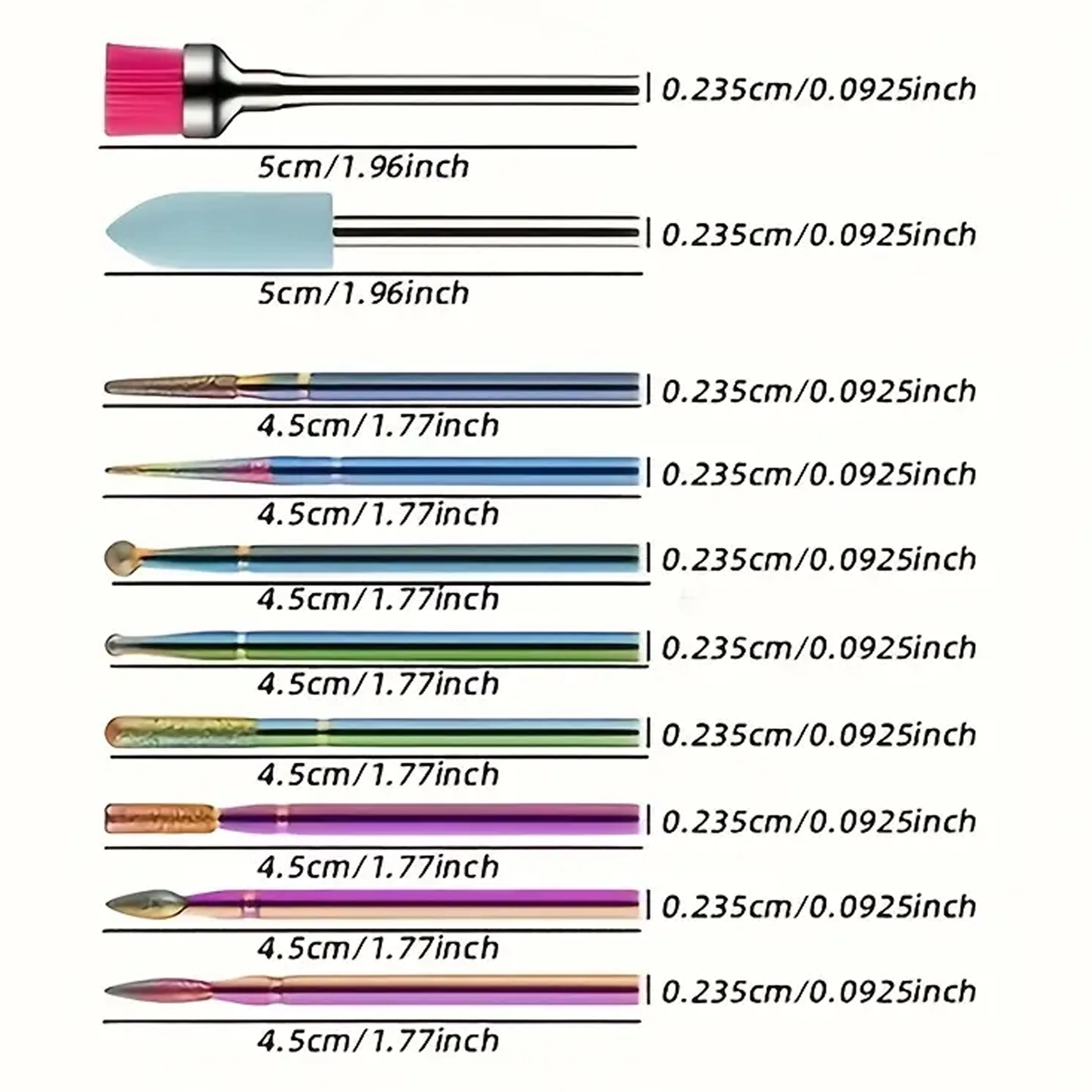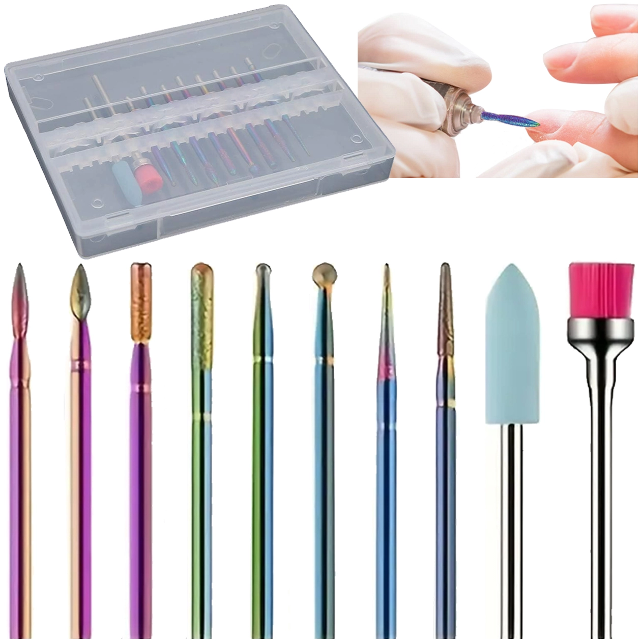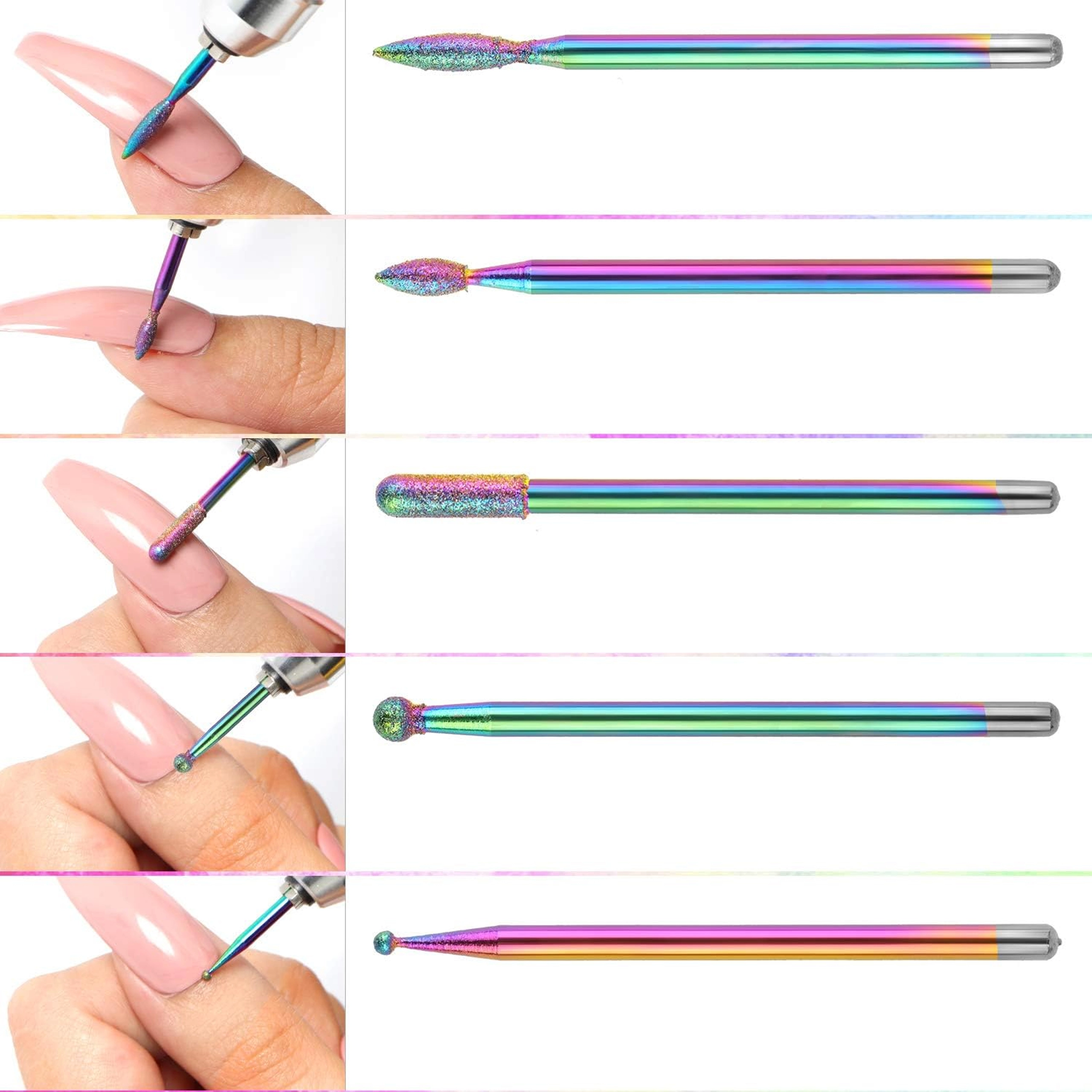 Díky různým tvarům (kužel, válec, kulička, jehla aj.) dosáhnete detailního opracování povrchu nehtu, odstranění starého materiálu a precizního dočištění bez zbytečného zahřívání. Sada je ideální pro salony i domácí použití a kompatibilní s běžnými elektrickými bruskami na nehty.